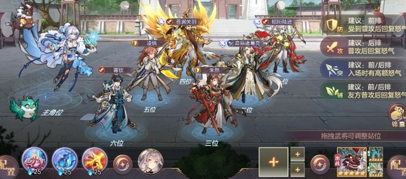 其中,首日自选弈辰诸葛亮、少女团活动兑换苍澜关羽、新区魂将活动抽昭珩陆逊;凌统朱然获取依靠首日自选及前期养成;孙坚为摇摆位推荐选项,通过激活吴卡加成羁绊来提升昭珩陆逊输出,同时孙坚的获取难度非常低。当然,孙坚位置换蒋钦也可以。