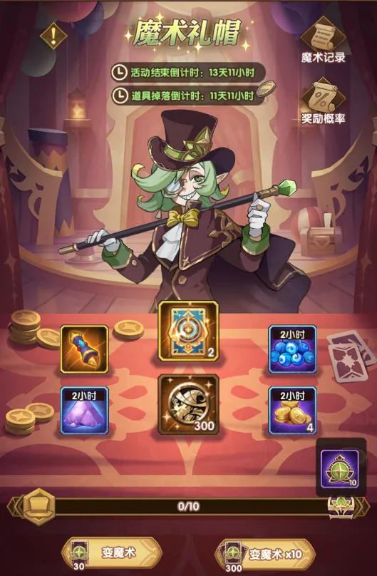 2.玩家在魔术屋中可以使用魔术券获得随机奖励。