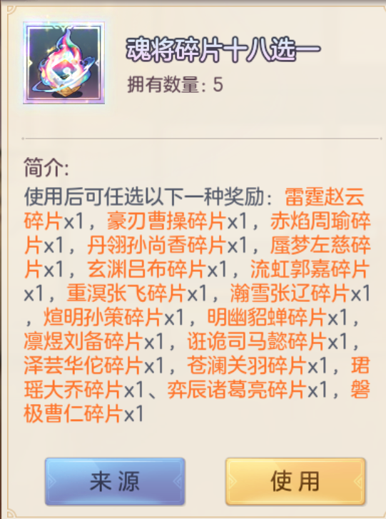 ①龙魂武将18选1(最多320片):即曹仁以及之前的龙魂武将
