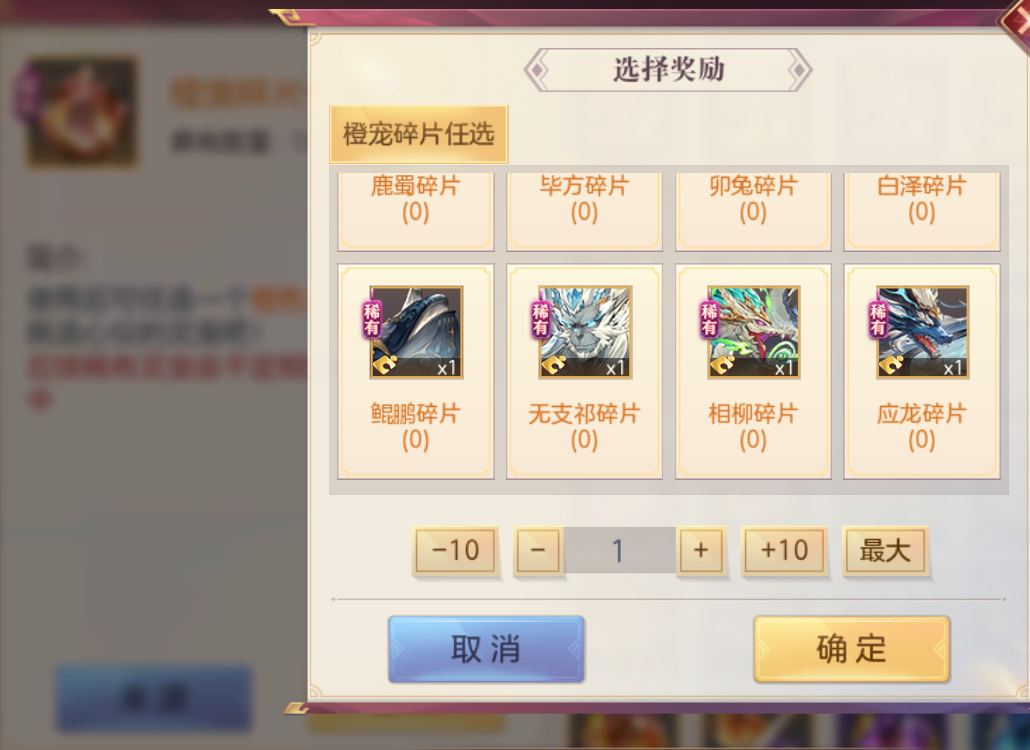 ③普通稀有任选(最多320片):应龙以及之前的灵宠(PS:等开活动了再看看,公众号来说确实的普通稀有灵宠,不是特殊的)