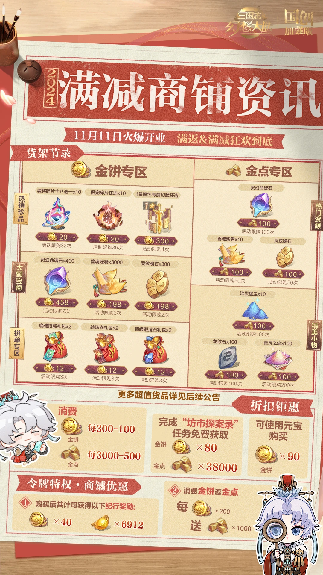 ①折扣需要先把想购买的东西凑够满额度,如300减100,请别单独购买,先把东西都放在购物车中,就如同网购一样,凑够折扣金额再买,每次都会有人不注意导致没拿到折扣。金饼和金点都是如此。