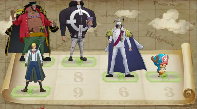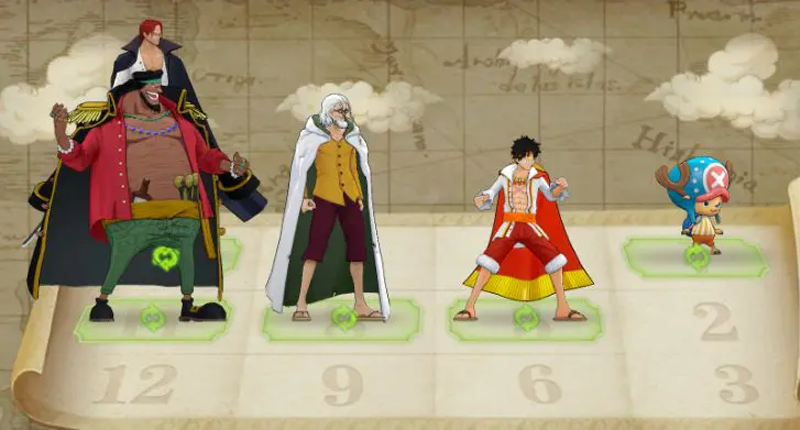 第一套阵容的思路其实还是以前的红发路飞玩法,一速路飞击退前排,红发跟上清一列,一般都是把重要角色放在后面藏起来的,这样就很容易控到后面的关键角色,从而取得游戏的胜利。新世界乔巴的出现给路飞增加了强大的生存能力,这里要说一下一个小细节,遇到对面玩肉队的元素阵,路飞起手就不要击退了,直接变身四挡,雷利会接着一套把大熊打到后面去,红发清中路的战国和大熊会顺便把大熊的复活打出来,第二回合路飞秒前排战国,红发如果对位到萨波就终结,如果是女帝就叠气势,基本上都能拿下,胜率在70%-80%以上。