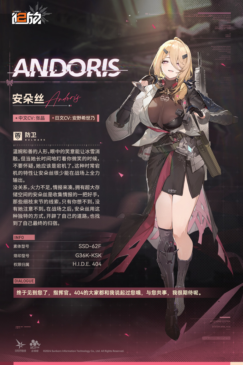 尊敬的指挥官,现在为您带来防卫人形【安朵丝】介绍!
