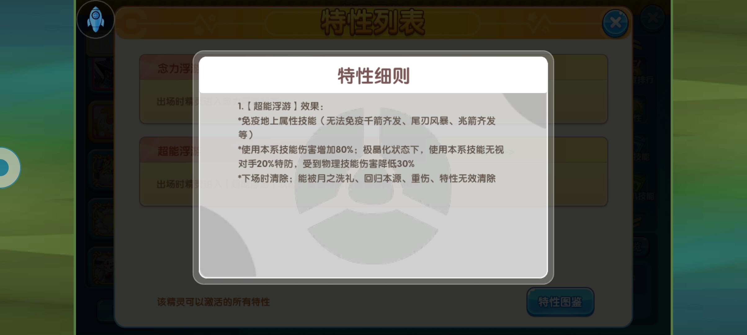 至于属性的话,是单超能属性,超能属性,在这个游戏里面抗性是最弱的,而且在当前版本被克制,可以说是相当爆炸,而且冲突的是在当前版本格斗属性较多,超能属性刚好可以压制,缺点的话就是当前版本又有很多宠物可以抵抗超能属性,最明显的就是巨金怪了,只要遇到巨金怪自身就完全没有任何的输出空间,所以说超能属性的话,只能说属于一般般不强也不弱。