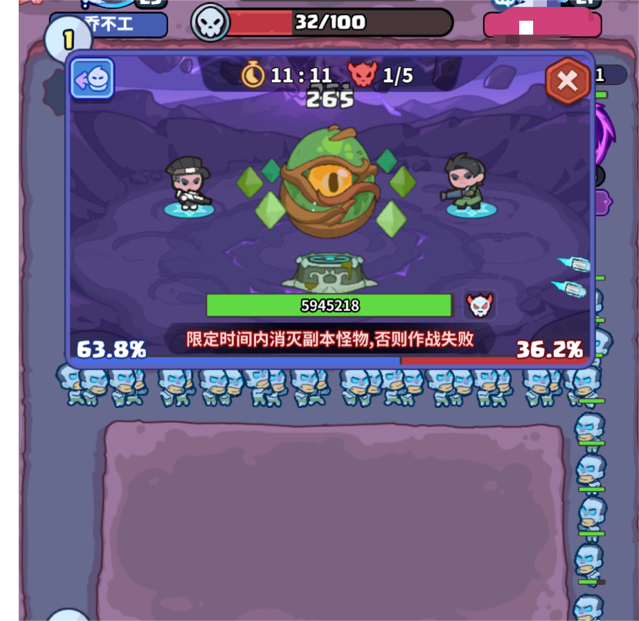 对于一般玩家,困难局第10波的boss,起码要有1个紫色英雄,过起来才不会费劲。而卡白色英雄的玩法的代价是不升“强化概率”,第10波召唤出紫色英雄的概率不高,会把压力都堆给友军,一旦友军运气不佳,极有可能会漏掉我方boss,往往这时我方又用领主追着boss打,不懂得放,使boss晕在那里挨时间,倒计时结束导致战局失利。
