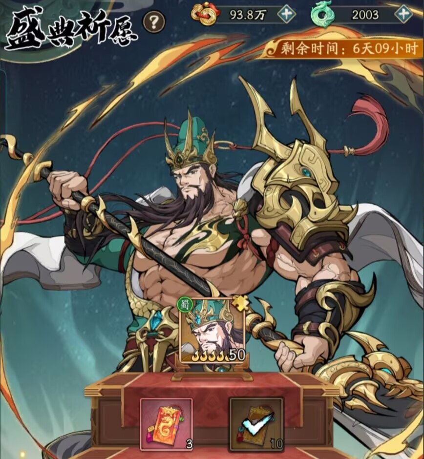加上开服活动【盛世祈愿】给的也是蜀国的核心关羽。所以蜀国成型速度是很快的!