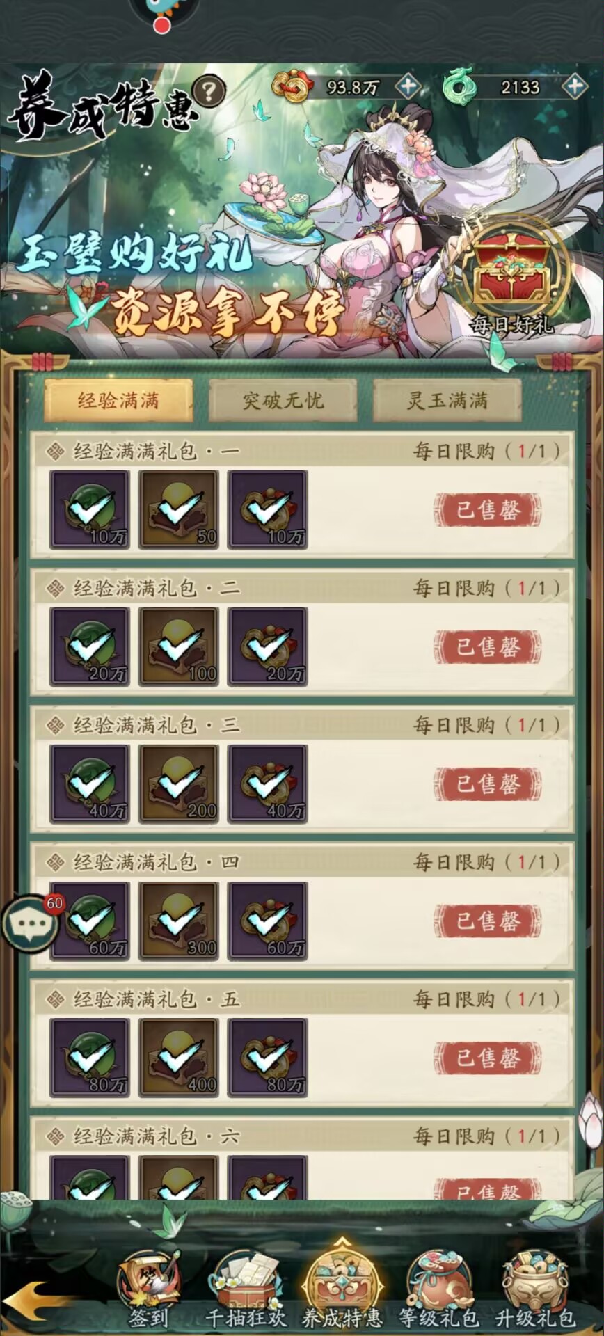 比如:特惠礼包里面的养成资源平民也可以适当买,包括七日活动里面的灵玉礼包都可以买,性价比很高。