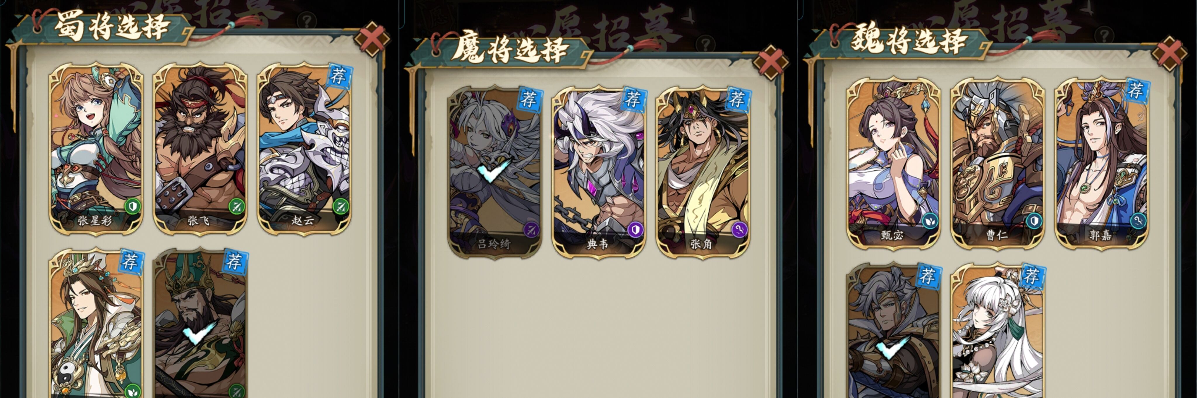 魔阵营:先拉张角后拉吕玲绮。