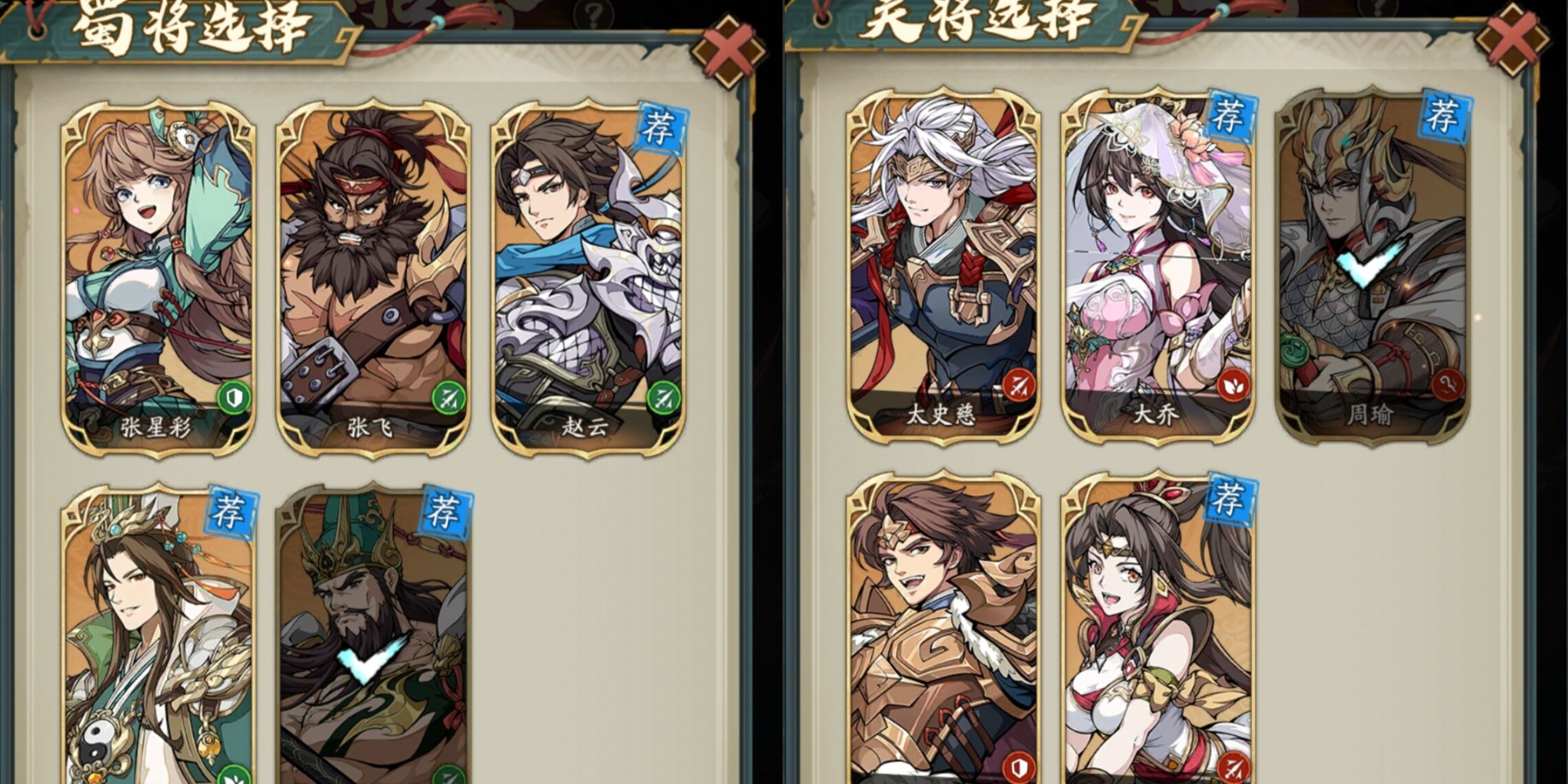 比如:蜀国阵容选择【关羽】或者是【赵云】。