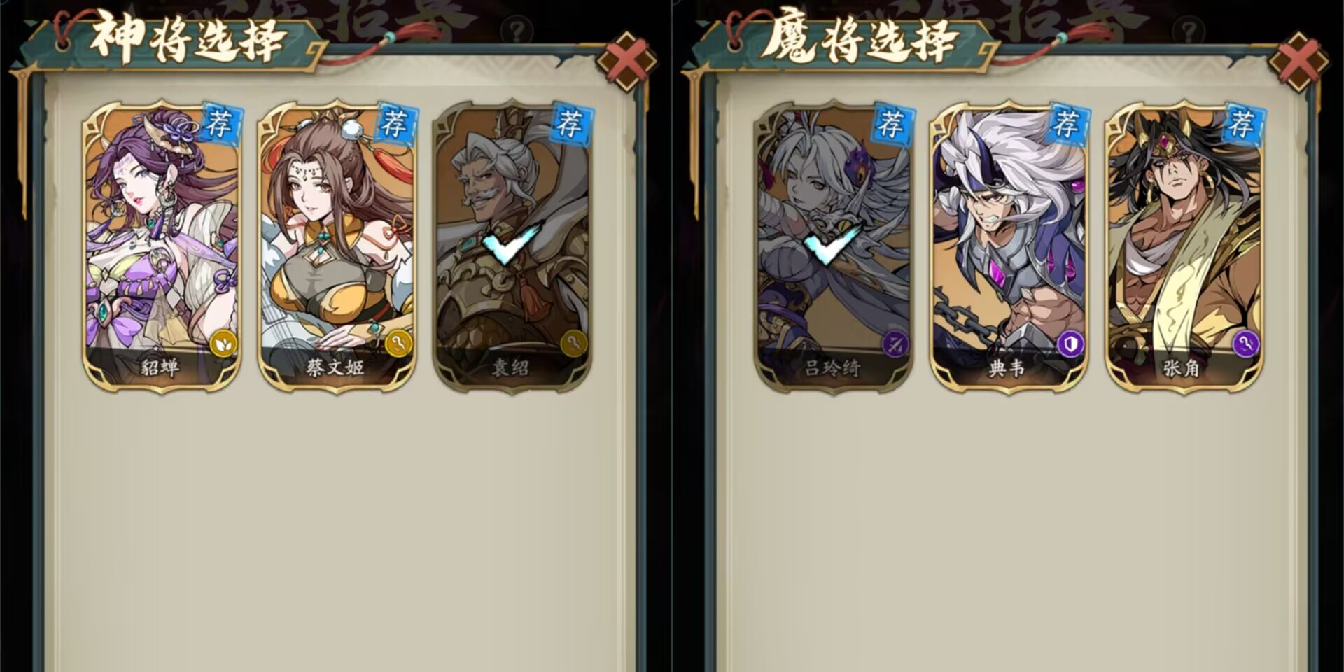 其实从【当下考虑的话】优先选择适配自己阵容的武将:最适合的就是【神魔阵容】的联动性。上面也说了玩【马超】的氪佬:心愿可以优先选择先拉【袁绍】/其次是【蔡文姬】。