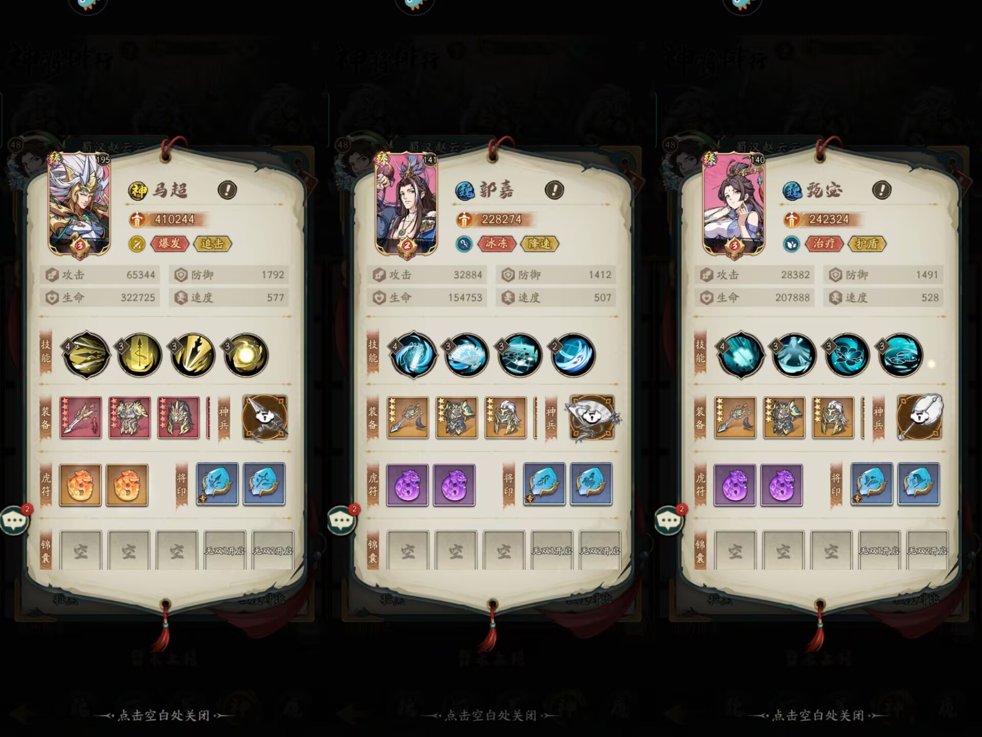 除了马超。其他角色顺带培养就行。暂时不用养太高,因为我们后期还要换成三神体系以及全神体系!
