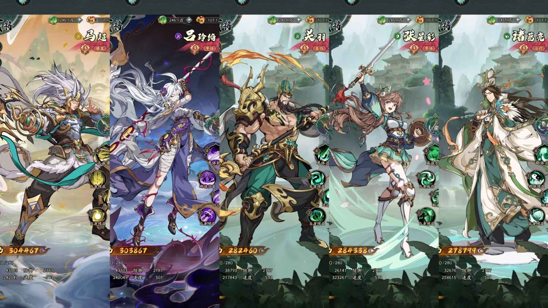 ②【推荐二:神+蜀混搭斩杀收割流】。神马超+吕玲绮+关羽+张星彩+诸葛亮。
