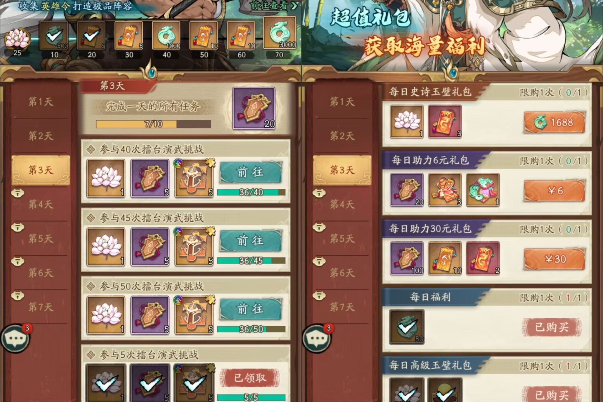 活动七日盛典里面的每日玉璧礼包性价比还是非常不错的,都可以考虑购买!