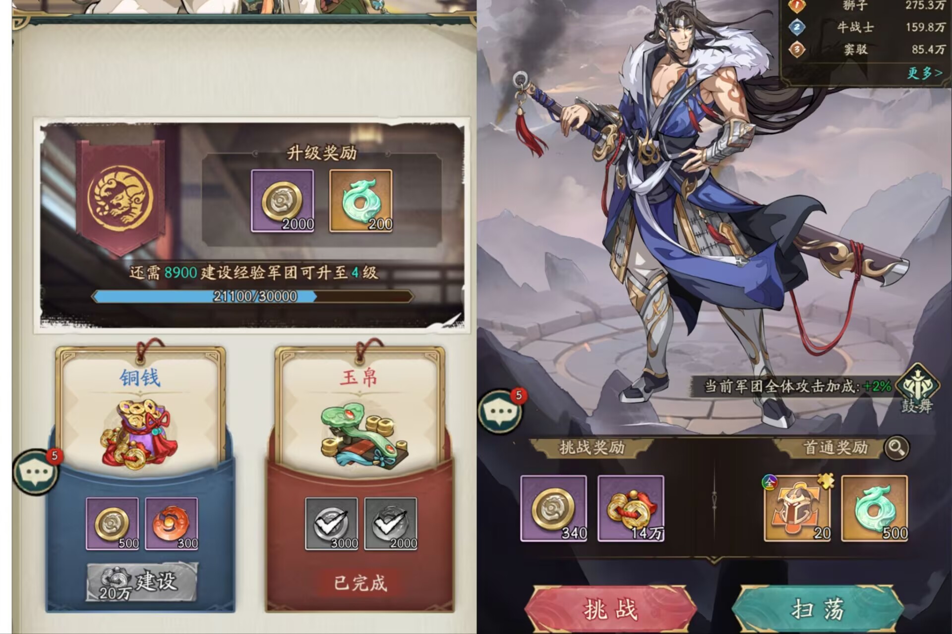 ②军团试炼:每天免费挑战3次,同时每天可以购买3次挑战次数,需要消耗450玉璧!