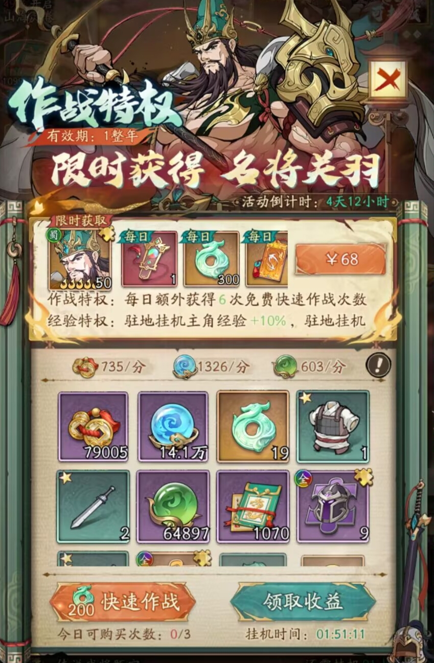 中氪以上的氪金大佬,前期冲榜可以直接买完这些折扣的突破丹和武将经验。