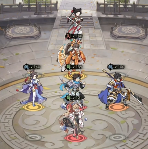 新区建议大家首先以魏蜀吴混搭的这样一个阵容,一T一治疗三输出来推图。到后期大家养成这个资源比较多的情况下,可以再去转成纯魏国、蜀国或者吴国的国家队。然后再往后就是堆神魔的国家队了。