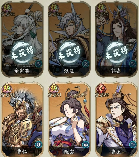 然后养成的话建议是均养。其实这个游戏大家可以看到,目前每个国家的卡,其实SSR的卡都不是太多。武将卡分资质和品级,分臻品跟卓越,臻品比卓越好,资质数值肯定是越高越好的。神魔的话最高可以到95的资质,魏蜀吴最高目前是92资质。