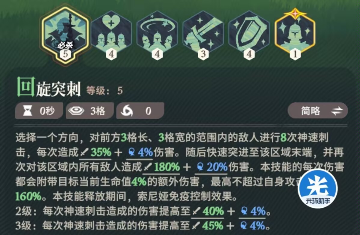 这个是索妮娅的核心技能,主要是可以提升两名队友的攻击和双防。
