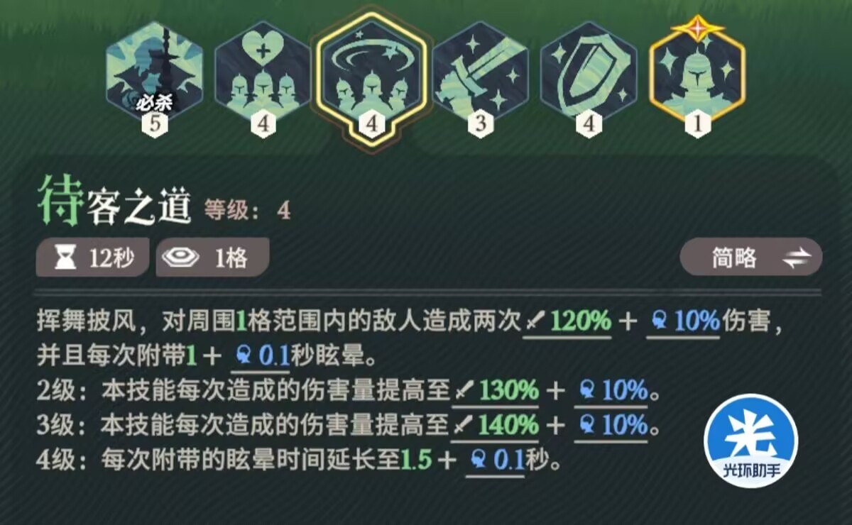 ③二技能:待客之道。对周围1格的敌人造成范围伤害+短暂眩晕,伤害一般,控制也短!没什么大亮点。