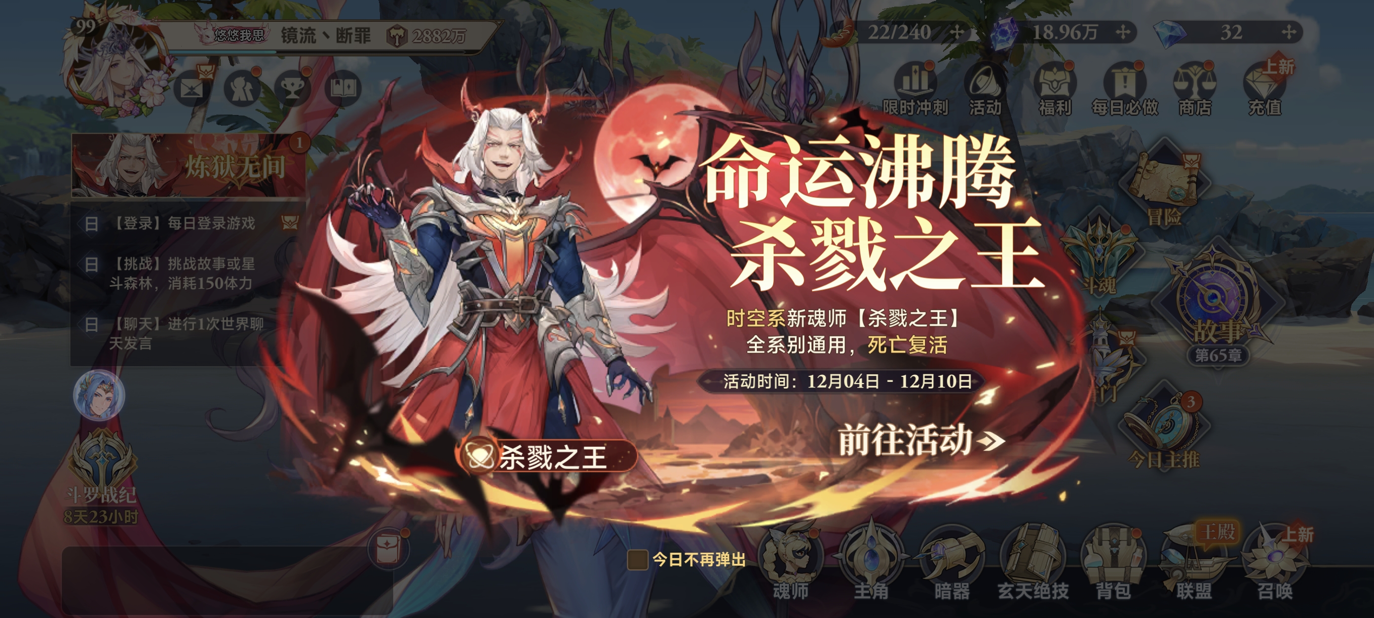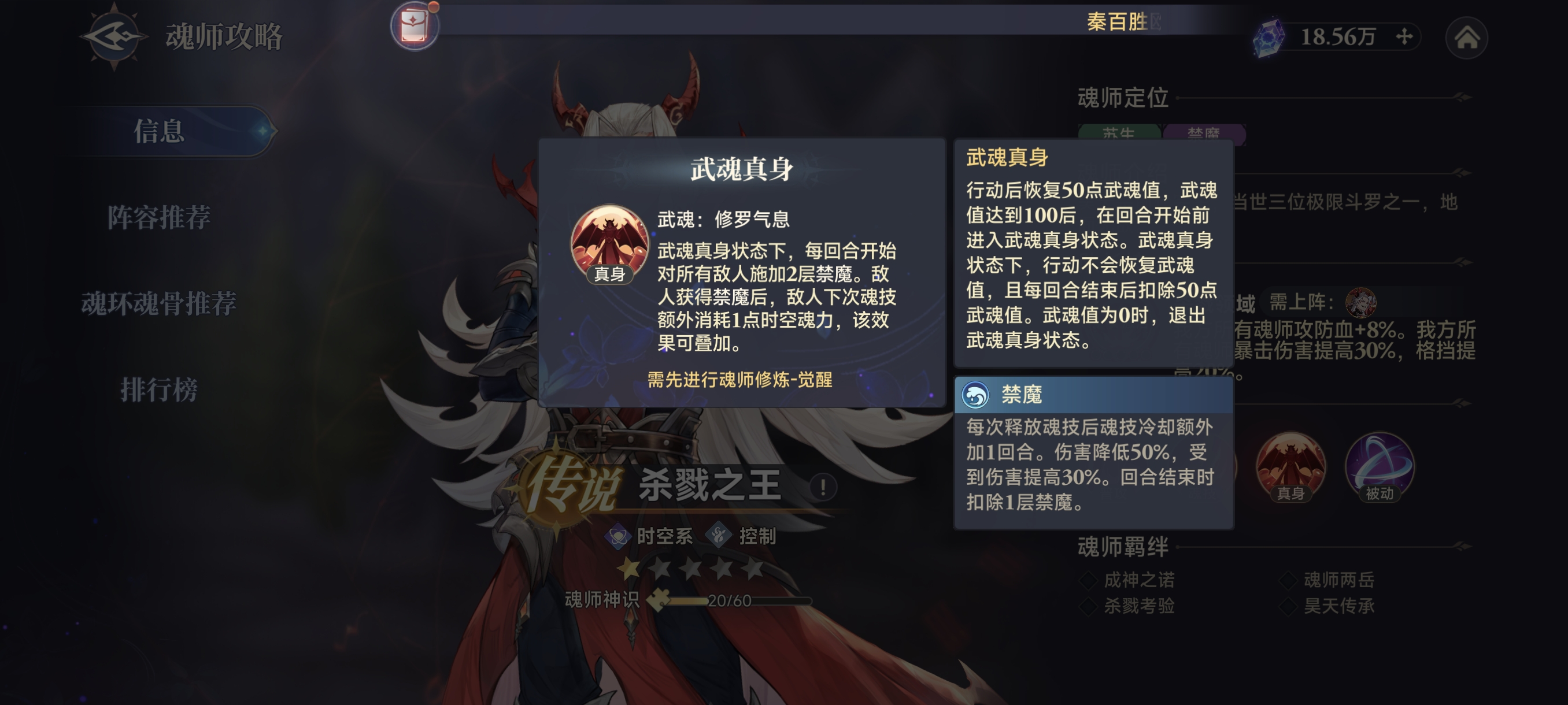 杀戮之王的真身效果机制也是远超前代所有时空英雄。不再是属性数值上的提升或降低,而是直接对敌方全体附加【禁魔】,大招消耗的魂力+1,这一点有多强,拿同属性的彩1和彩2英雄实战对比一下就知道,这1点魂力消耗无论从大招频率还是技能衔接的流畅度来说都是质变级的提升。