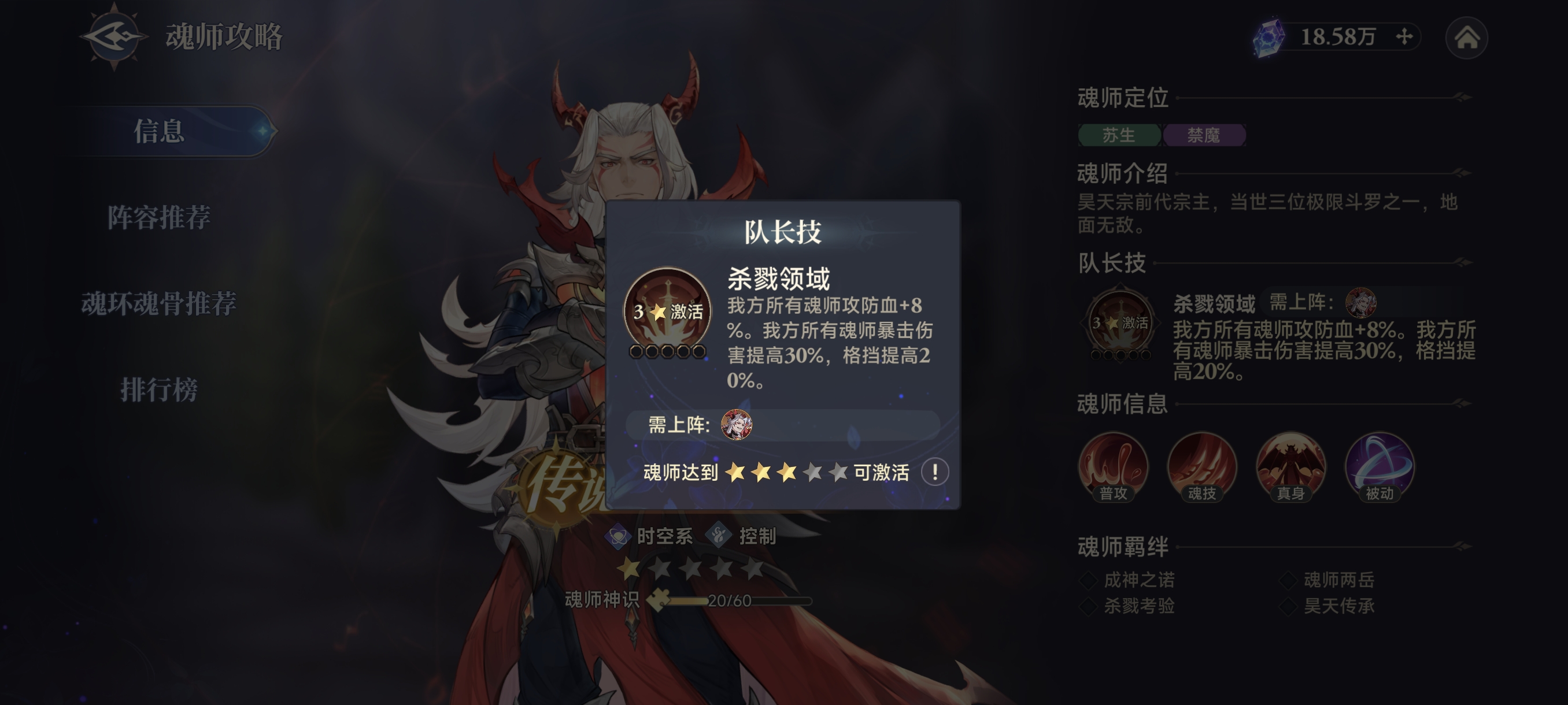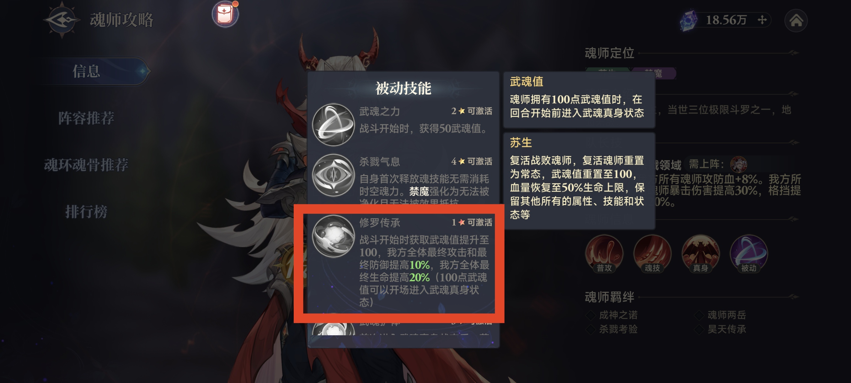可以在我方英雄阵亡后的回合结束时,半血满武魂值复活一个攻击最高的英雄。(全场限1次)