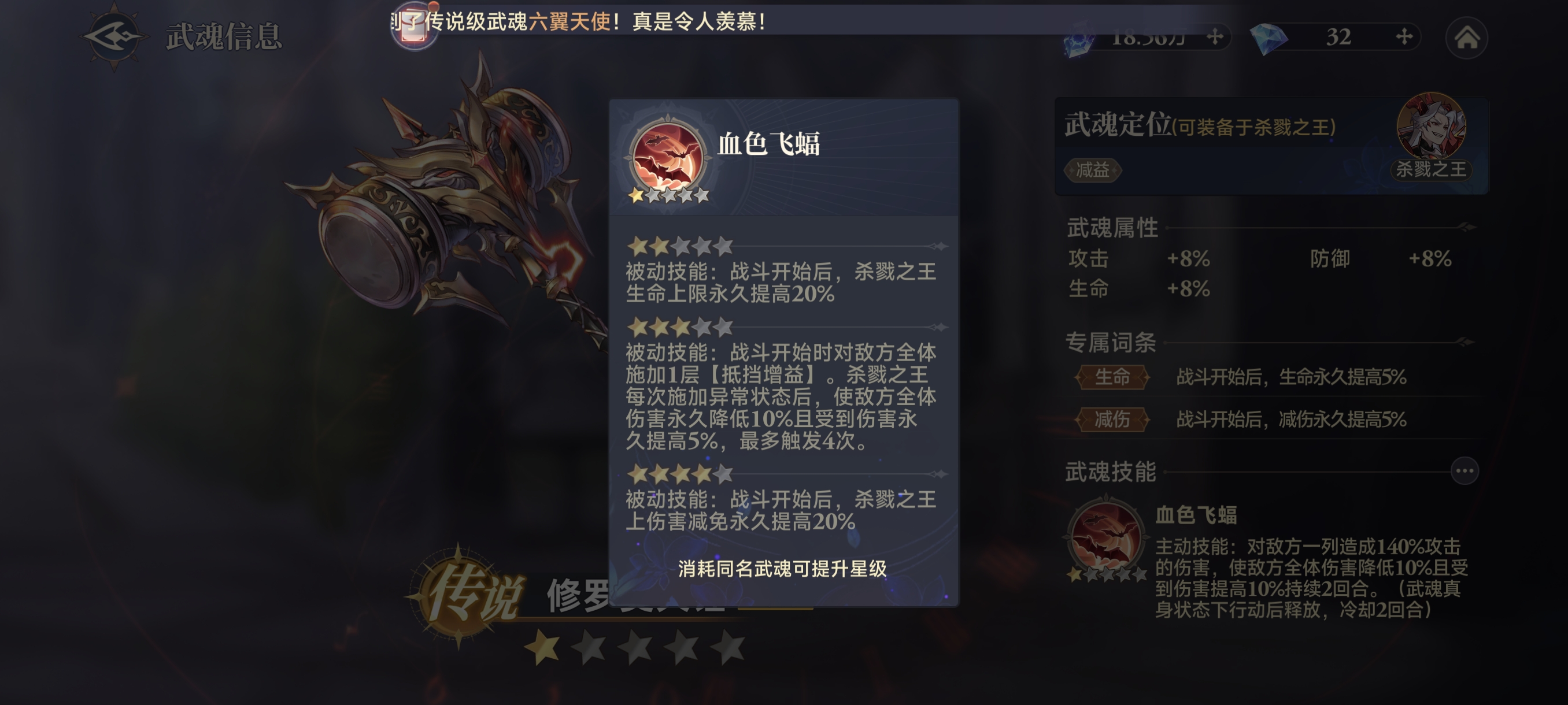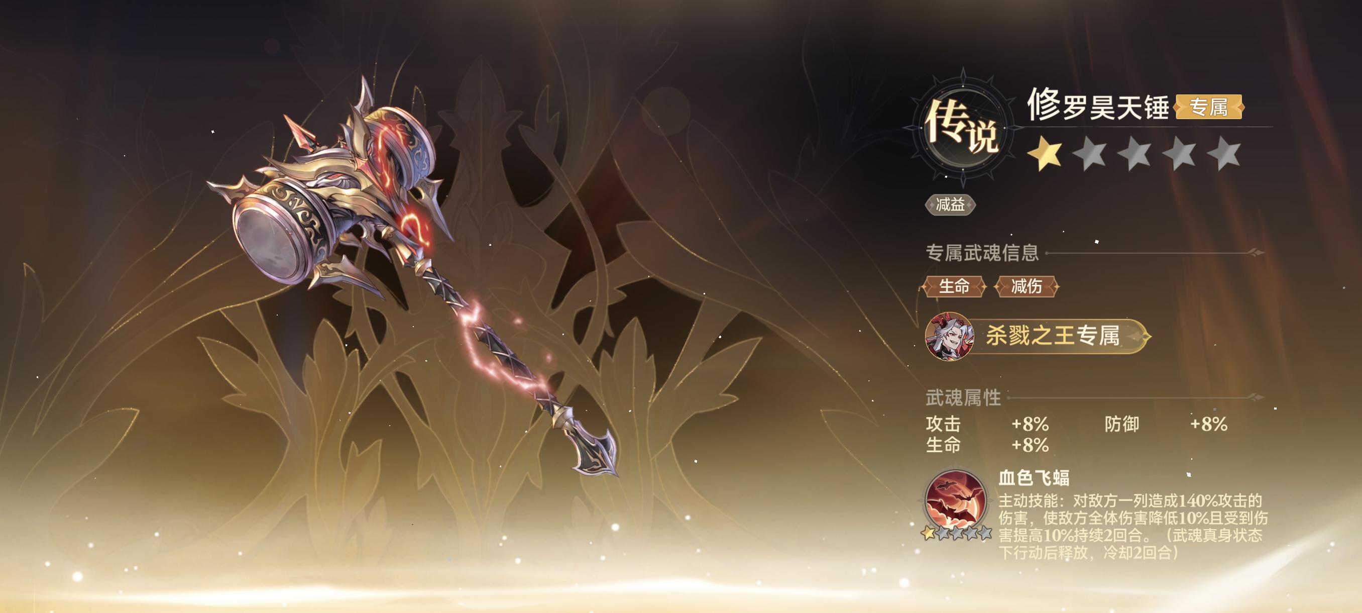 二、专属武魂-修罗昊天锤1星,武魂技-血色飞蝠