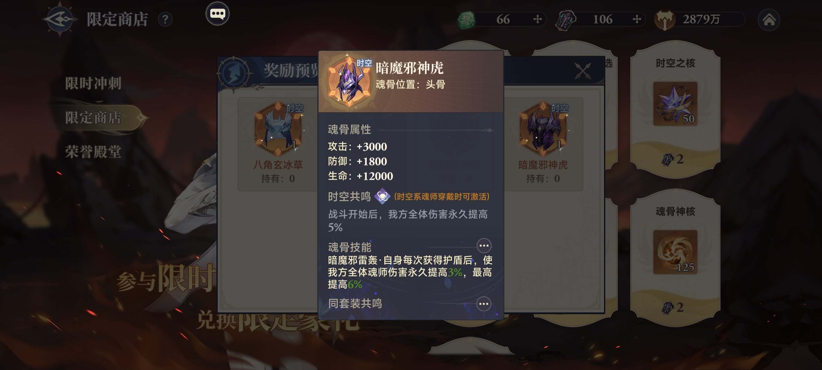 最后就是新出的时空外附魂骨了,八角玄冰草作为输出时空英雄的标配,但对于防御和辅助时空来说就显得很格格不入了。