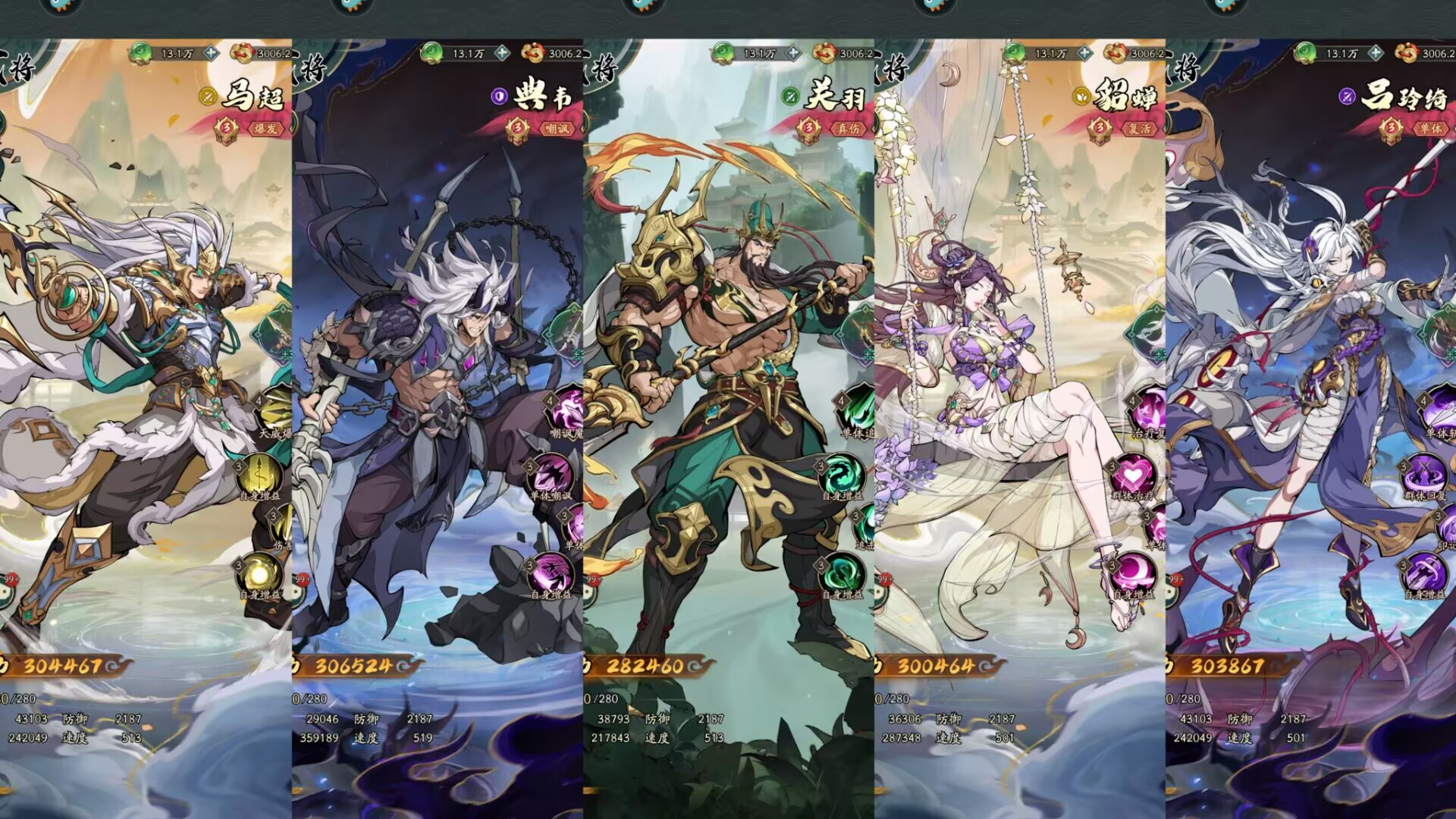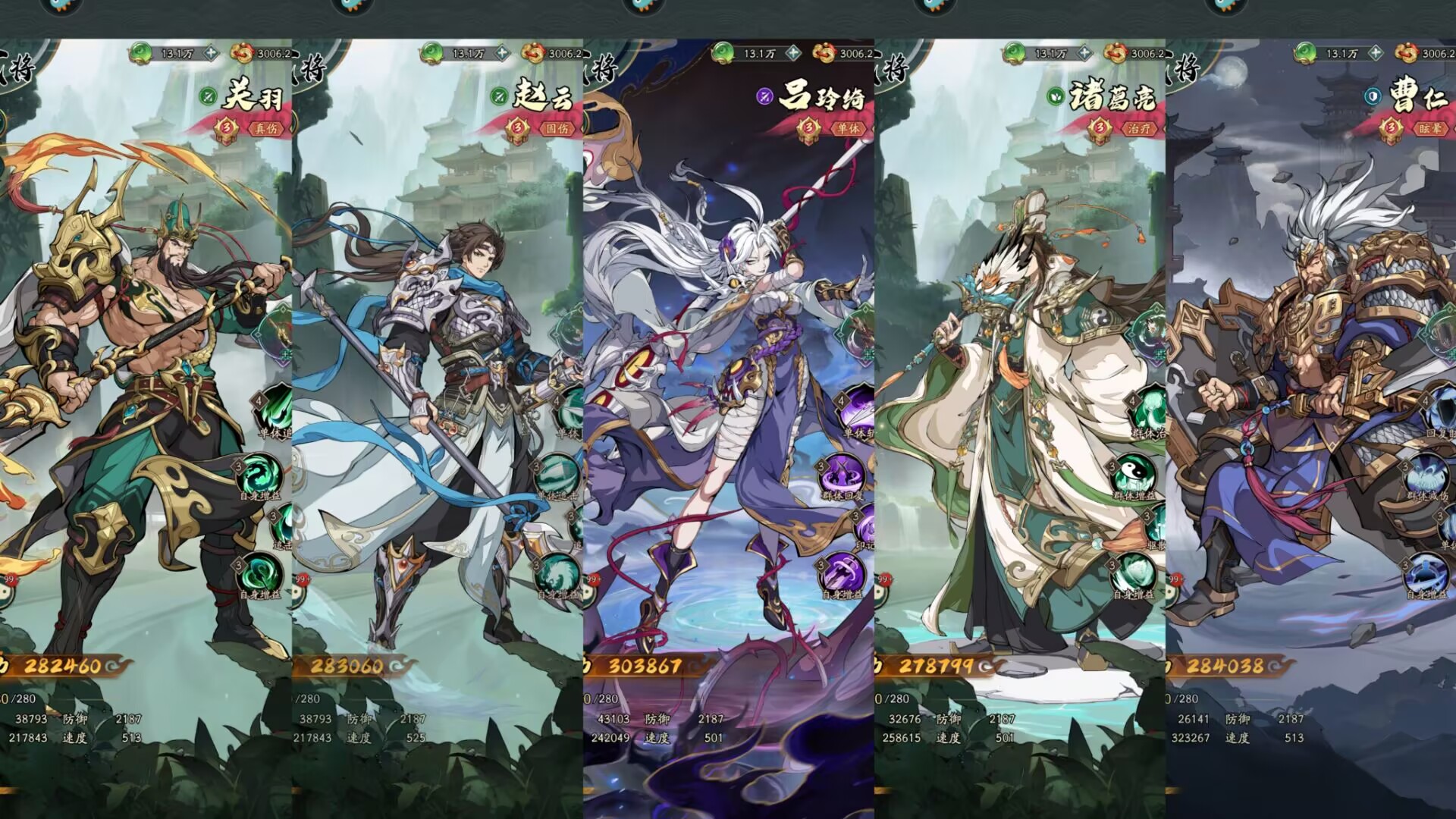总之平民玩家神魔阵容不要想,前期围绕关羽、赵云、吕玲绮来搭配就行了,也是平民玩家前期最佳的速成阵容。