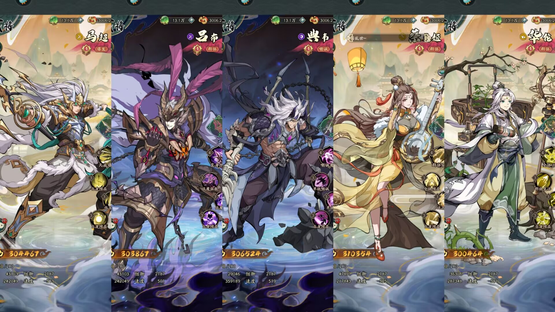 阵容推荐:马超+吕布+典韦+蔡文姬+华佗/貂蝉。