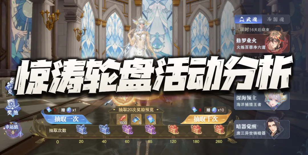 今天本着每日一活动的原则,游戏又是急不可耐的上线了全新的轮盘活动,惊涛轮盘......这个活动说实话成本就有点夸张了,远远的超过了昨天的修罗业火活动,搁这昨天的活动只是一个开胃菜对吧,四个6元礼包就跟咱们聚餐时的泡菜或凉菜一样,今天的这个大轮盘才是主菜?