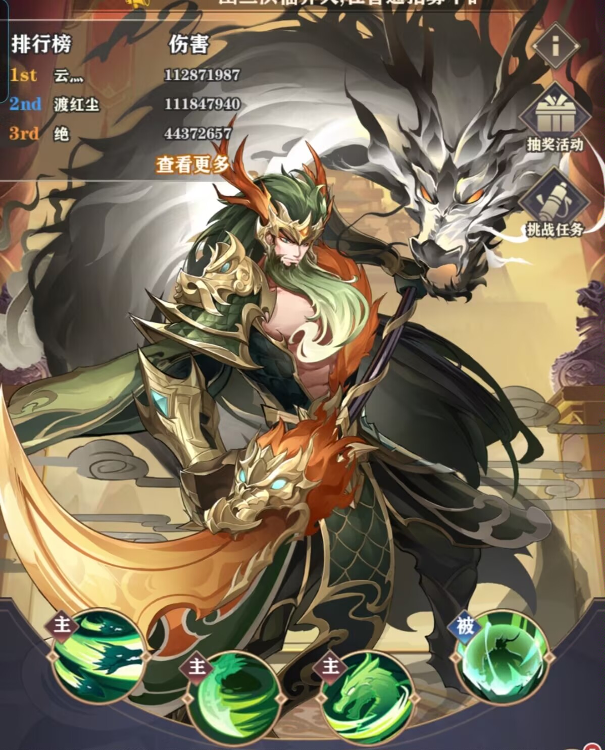 1:【关羽试炼】高伤武将推荐:(不包含辅助和前排)