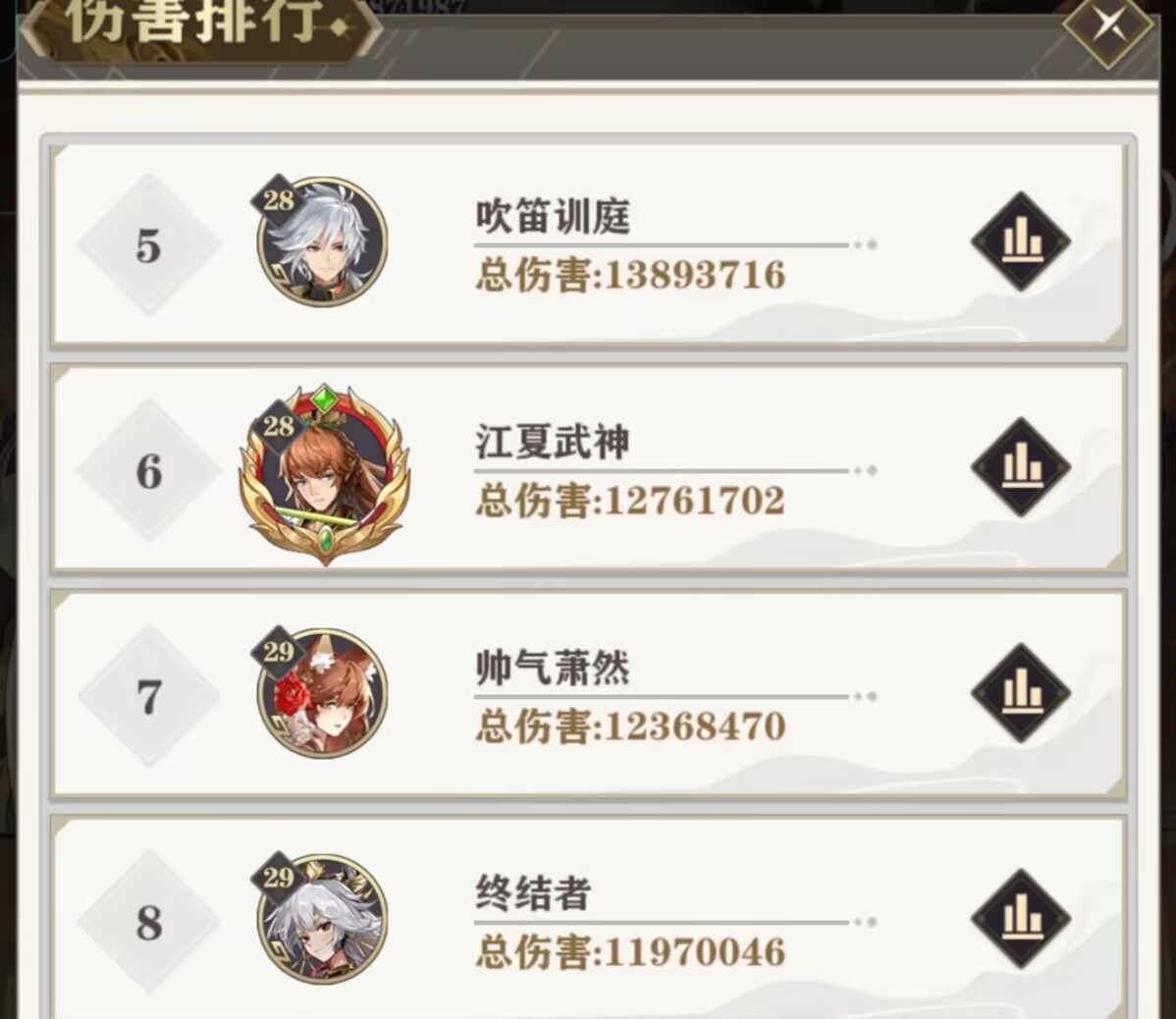 除了阵容搭配以外,练度也是最核心的一点,练度高自然打的伤害就高,前期阶段平民玩家和氪金玩家练度差距比较大!所以想在试炼中拿到前十名基本上是不可能的,平民玩家只能尽自己最大的努力去打出伤害来获得相应的奖励就行了,这点也是没办法,毕竟是硬性条件。