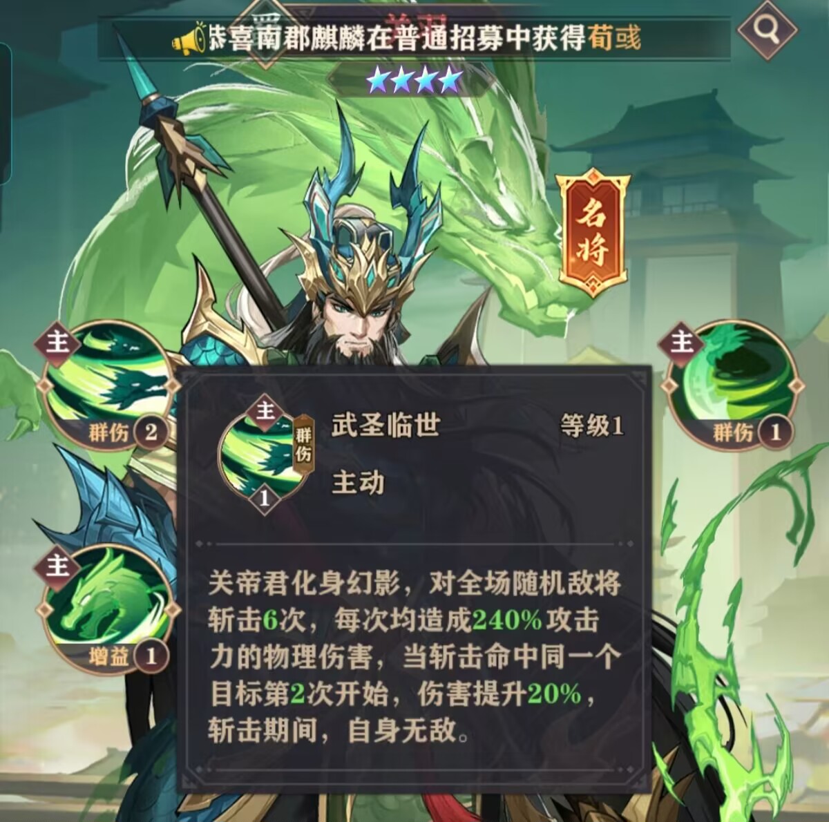 其他的武将其实表现都算中规中矩,这四个武将在面对关羽试炼单桩boss时候表现很亮眼。
