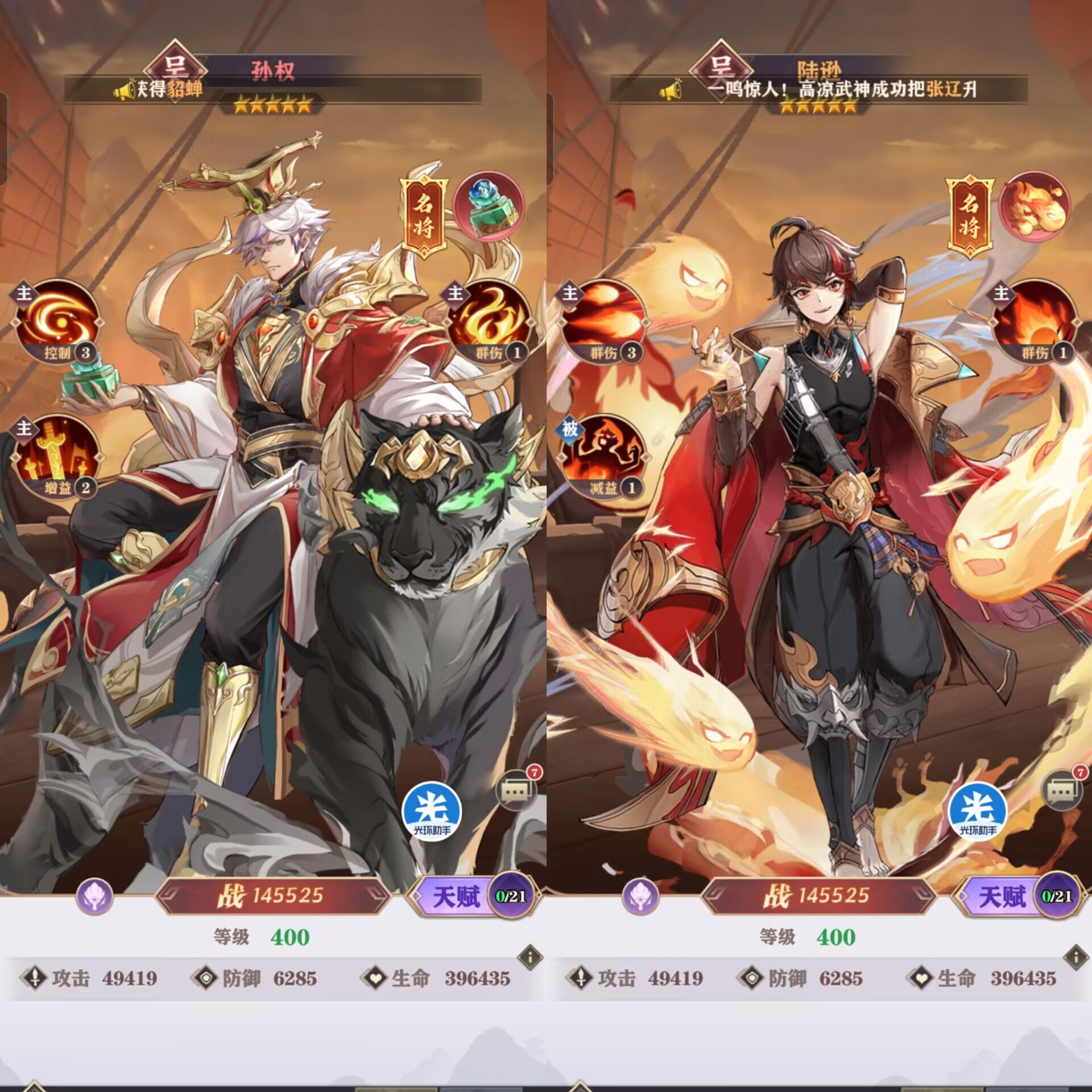 ②【吴国】:值得一说的就是周瑜灼烧最大生命伤害,在关羽试炼中发挥不出来,因为关羽生命没有设定的上限,这点吴国直接拉了。