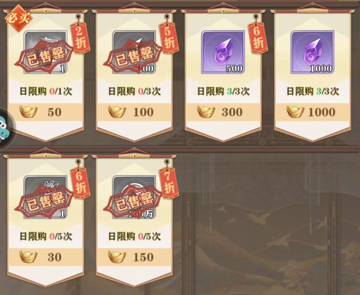 折扣的招募卷、折扣的进阶石、折扣的铜钱、折扣的钥匙。这四个都可以买。