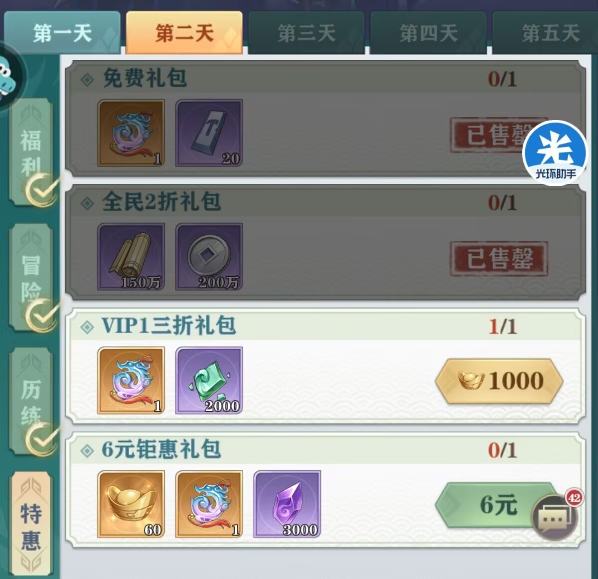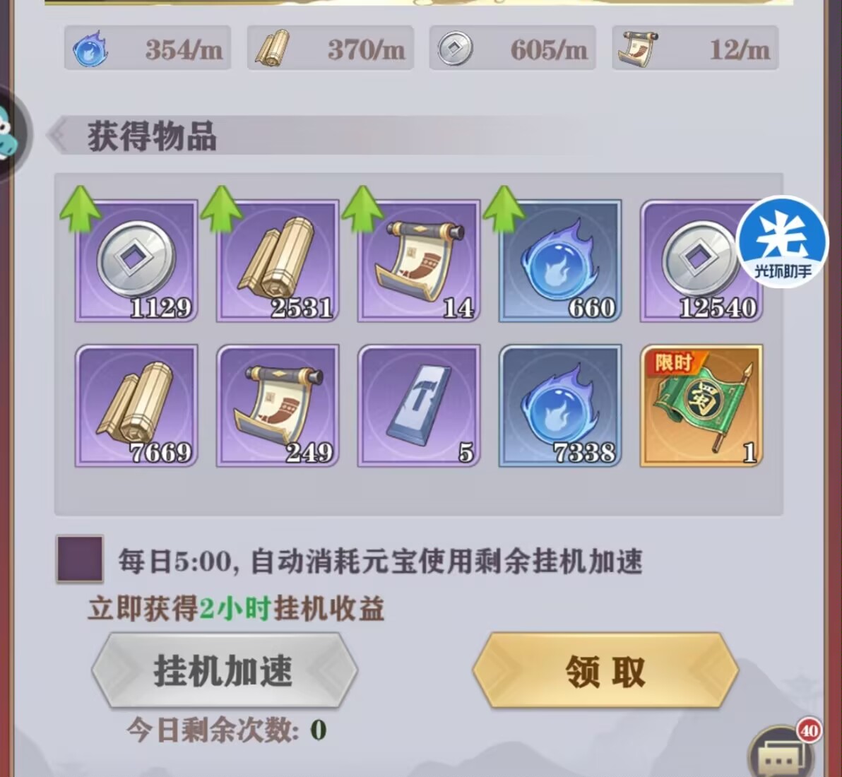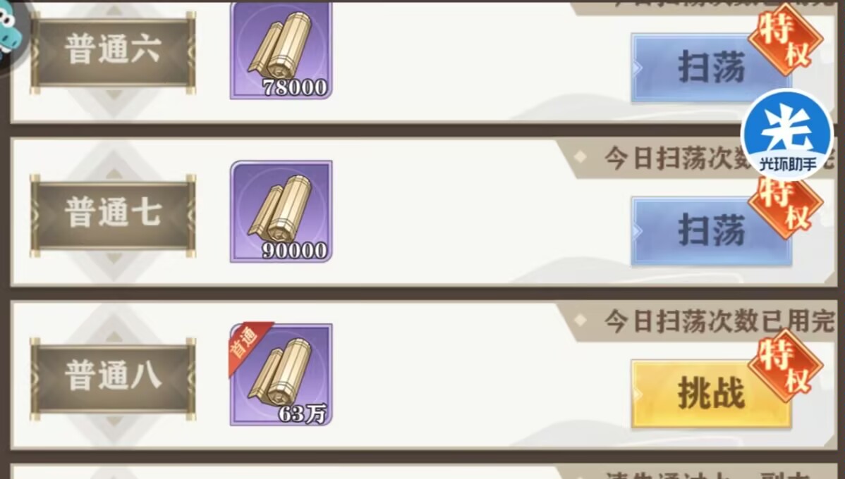这里挑战次数肯定要买满!发育阶段最缺的就是铜钱和经验这些资源了,没有理由不买次数