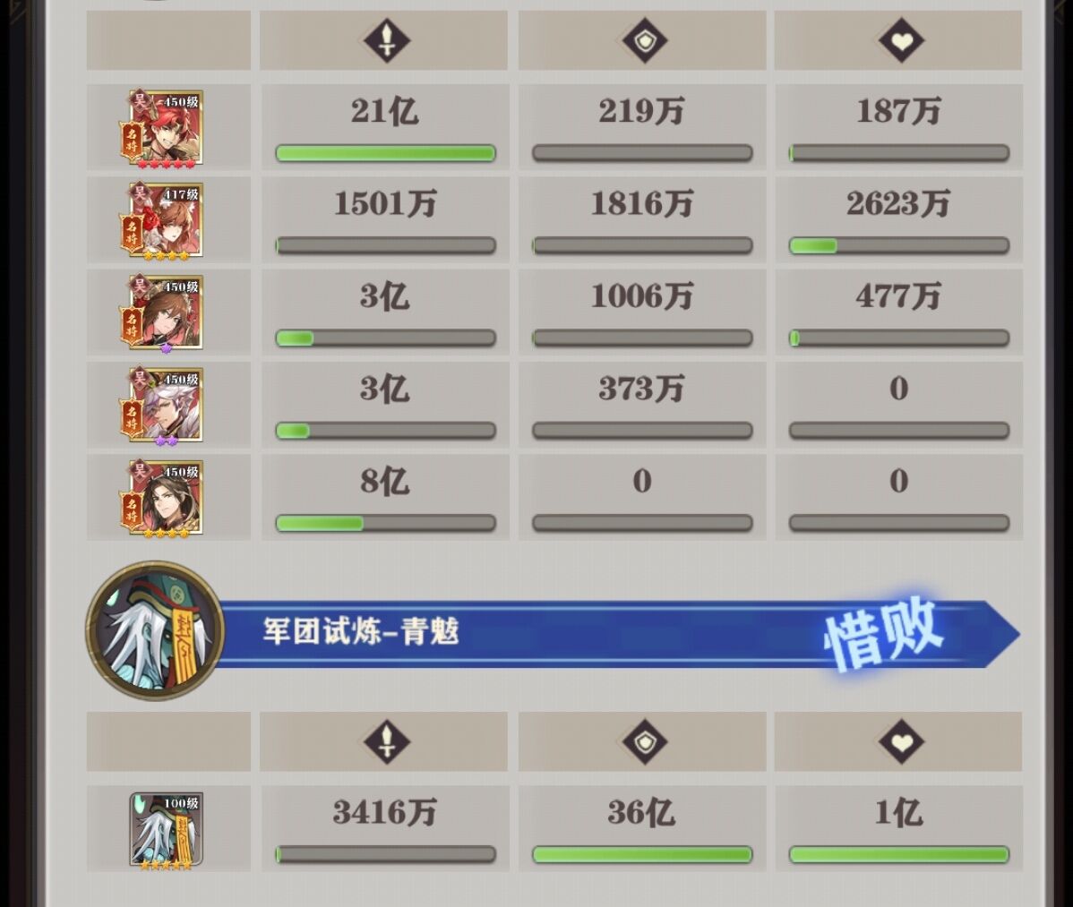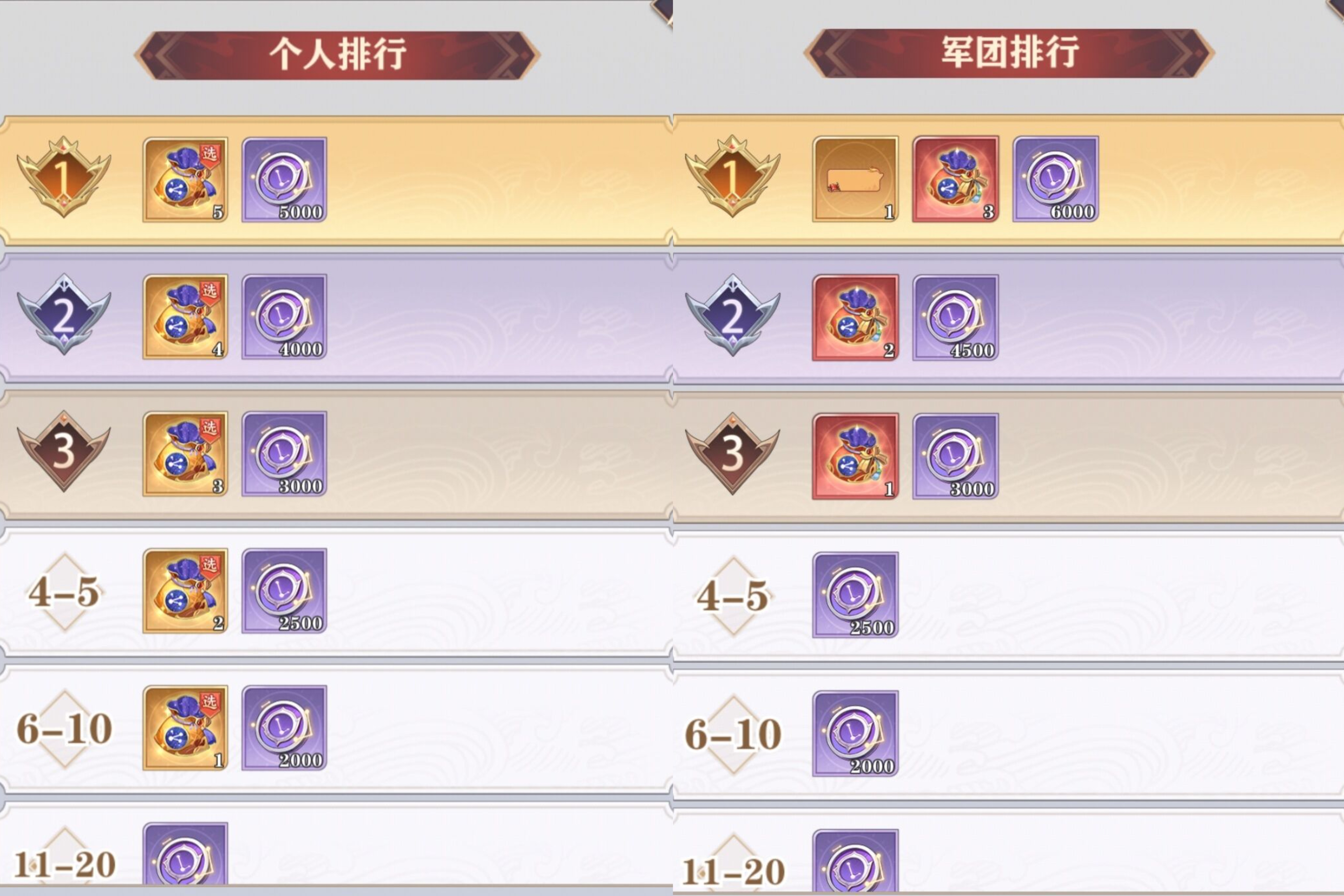 ③军团伤害越高,拿的奖励也越好,个人排行奖励不比军团排行奖励差,所以怎么去打更高伤害,就是我们个人要做的,除了练度就是阵容的搭配了。
