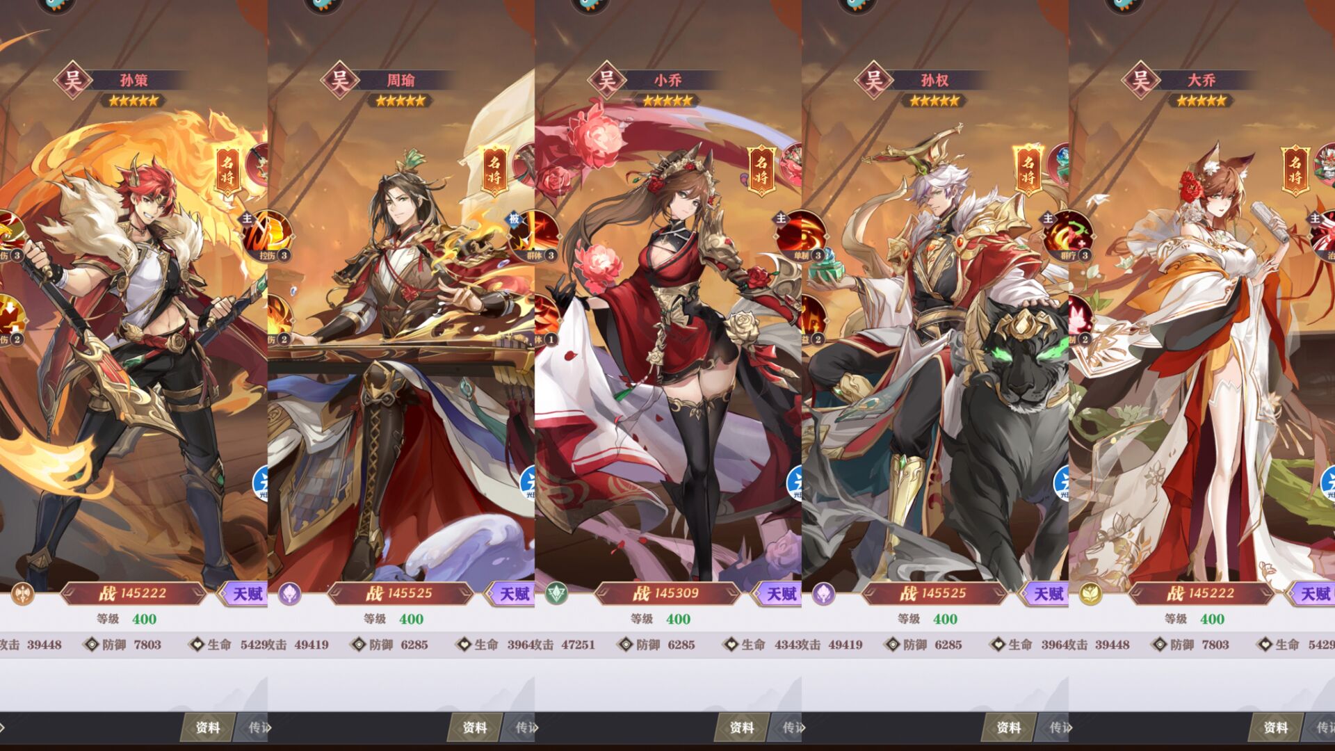 ①阵容推荐一:全吴国灼烧阵容。孙策+周瑜+陆逊+大乔+小乔。