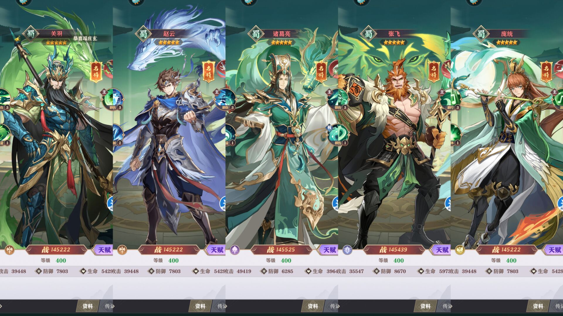 ②阵容推荐二:全蜀国阵容。张飞+关羽+赵云+诸葛亮+庞统。