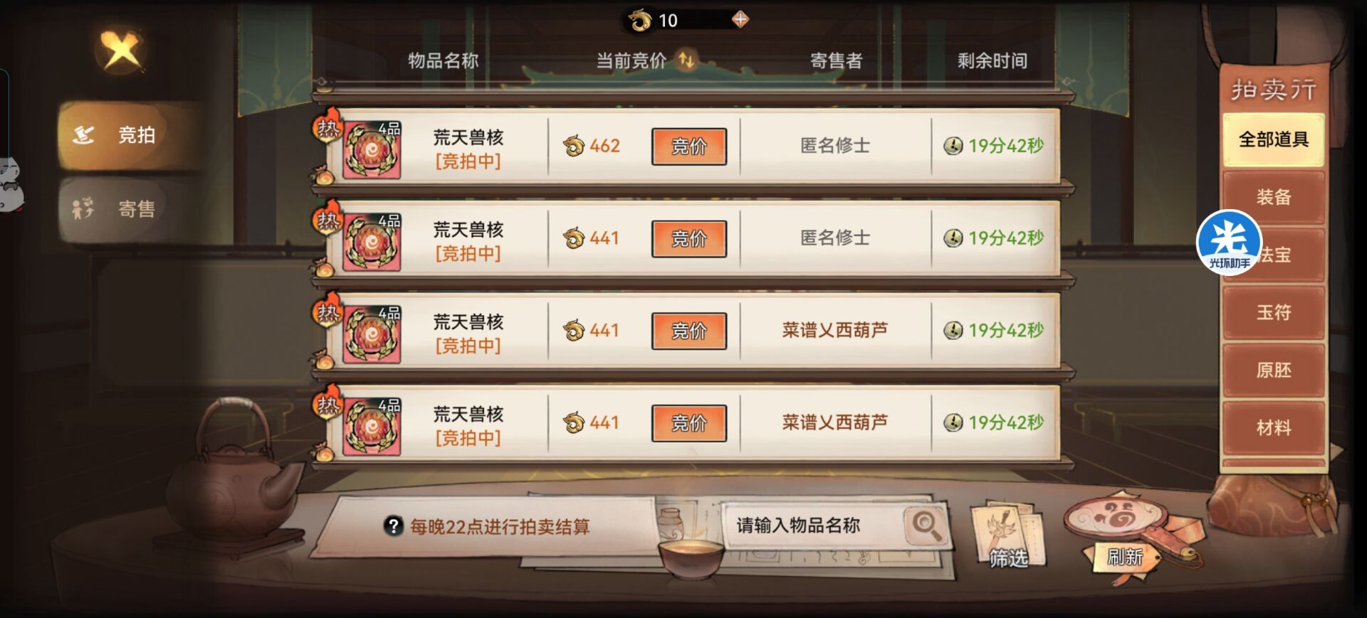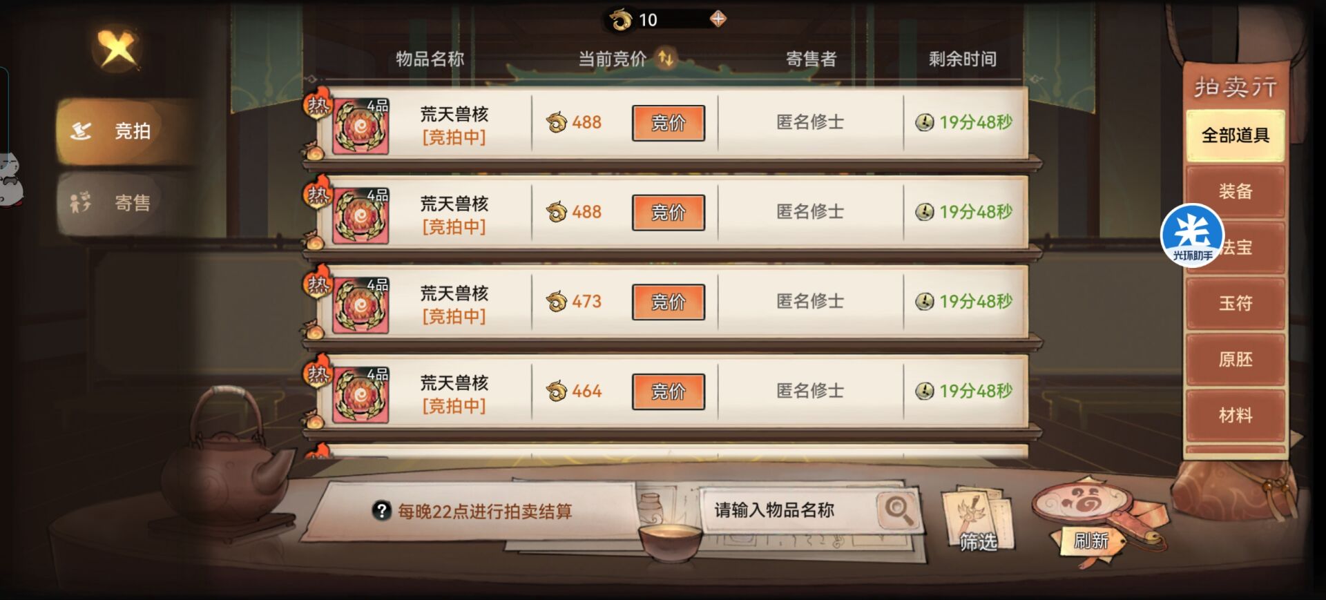 ③第三个方法:拍卖行使用仙玉购买兽核(只适合差十几个兽核或者差的不多的急着飞升的祖师们购买)。