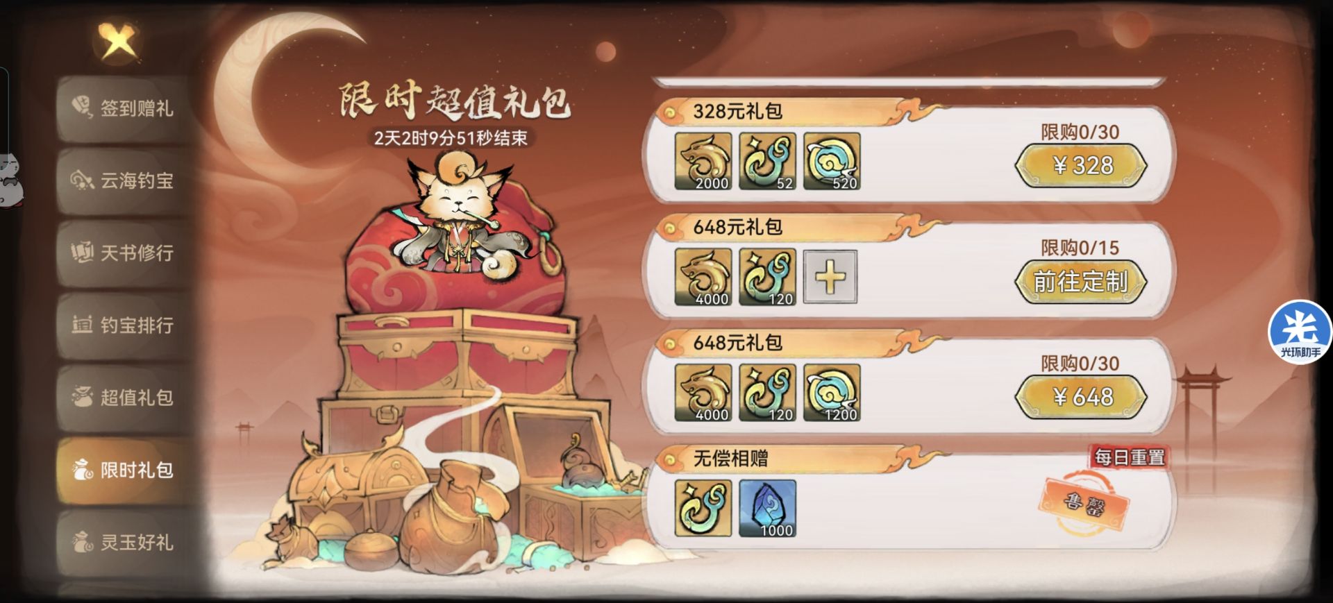 不推荐直充,直充买仙玉性价比最低,除非有双倍仙玉。