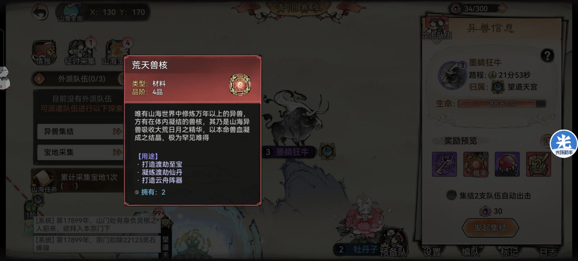 然后通知仙盟的其他想要刷兽核的玩家,一起只上一个垃圾弟子去刷专属妖兽。