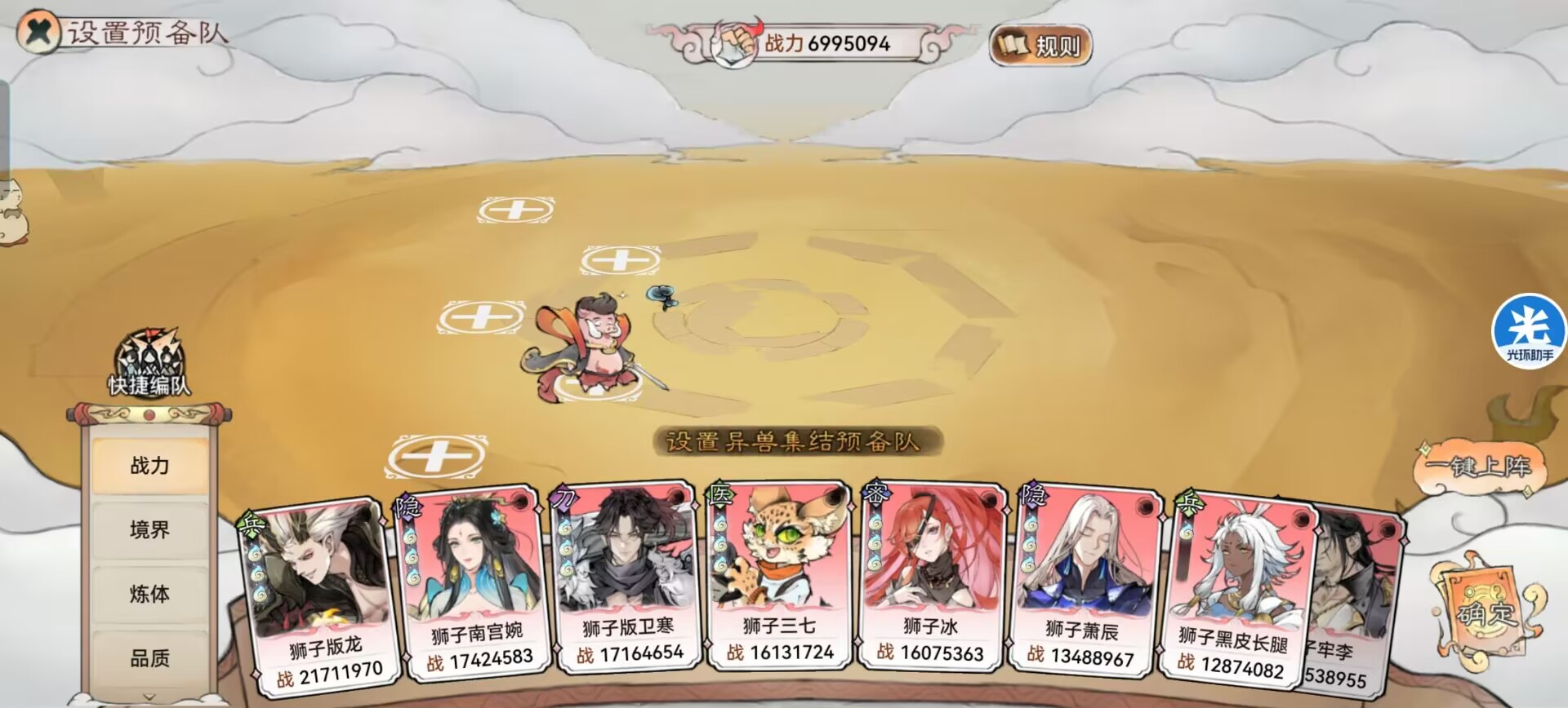这时候我们可以把我们的妖兽队全部下了,只上一个垃圾弟子!
