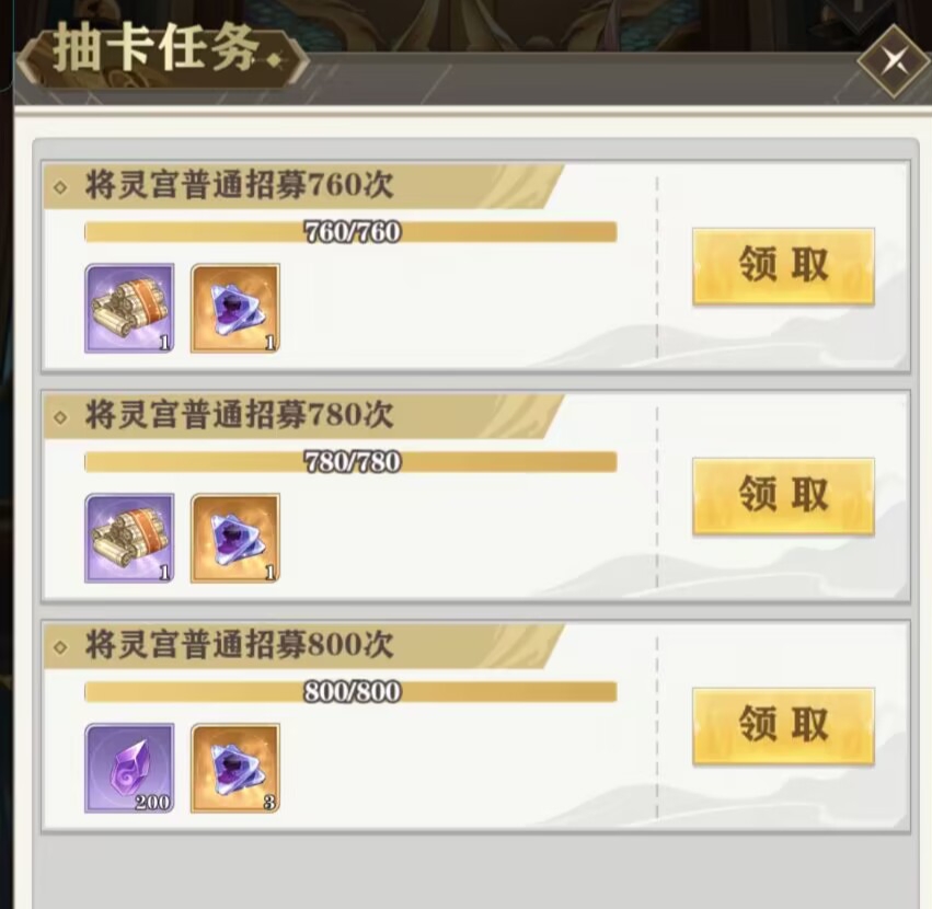 白嫖玩家基本上只能通过:日常的抽卡任务获取,所以能够获得的将灵石也非常有限。