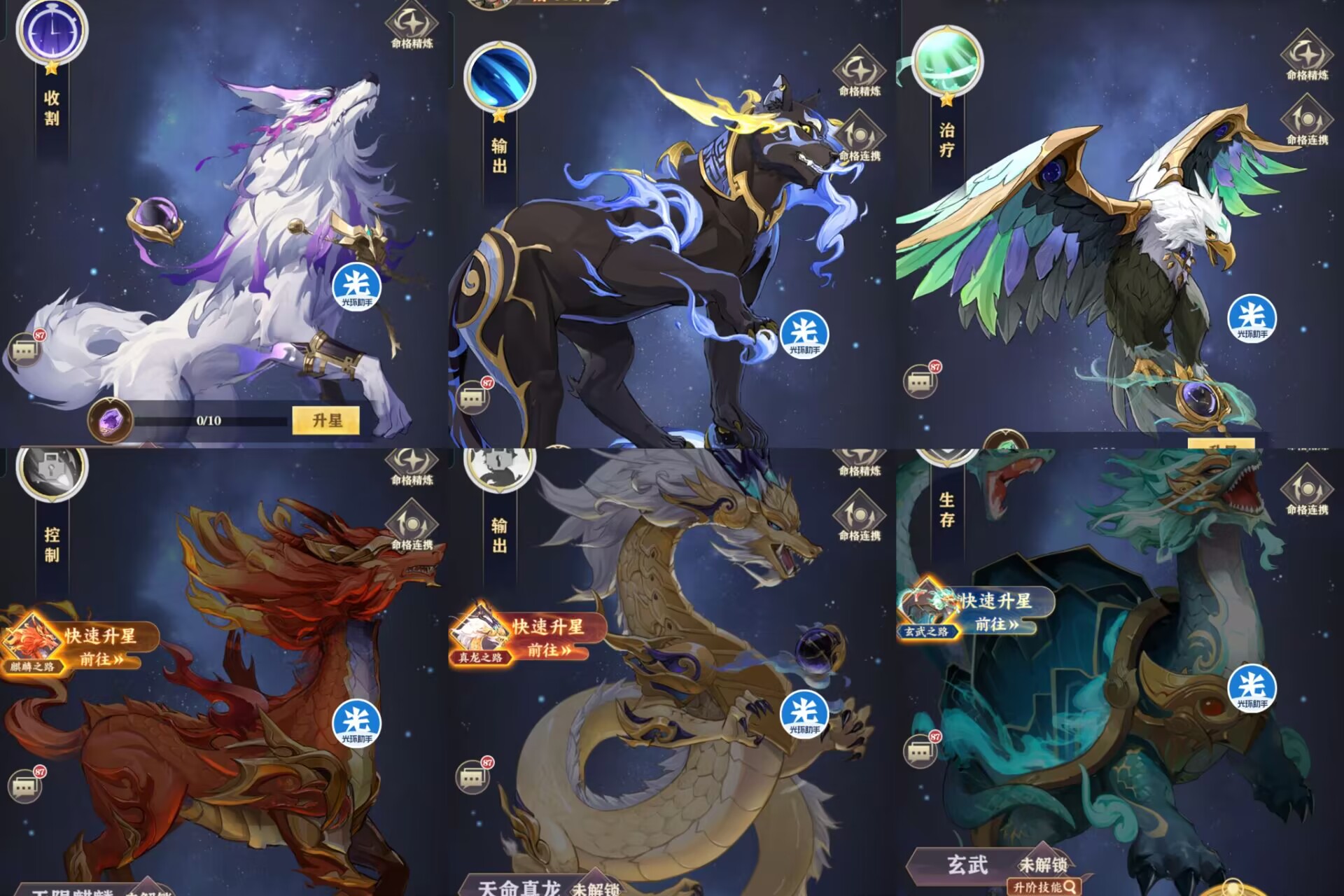 ①贪狼、②七煞、③破军、④天陨麒麟、⑤天命真龙、⑥玄武。