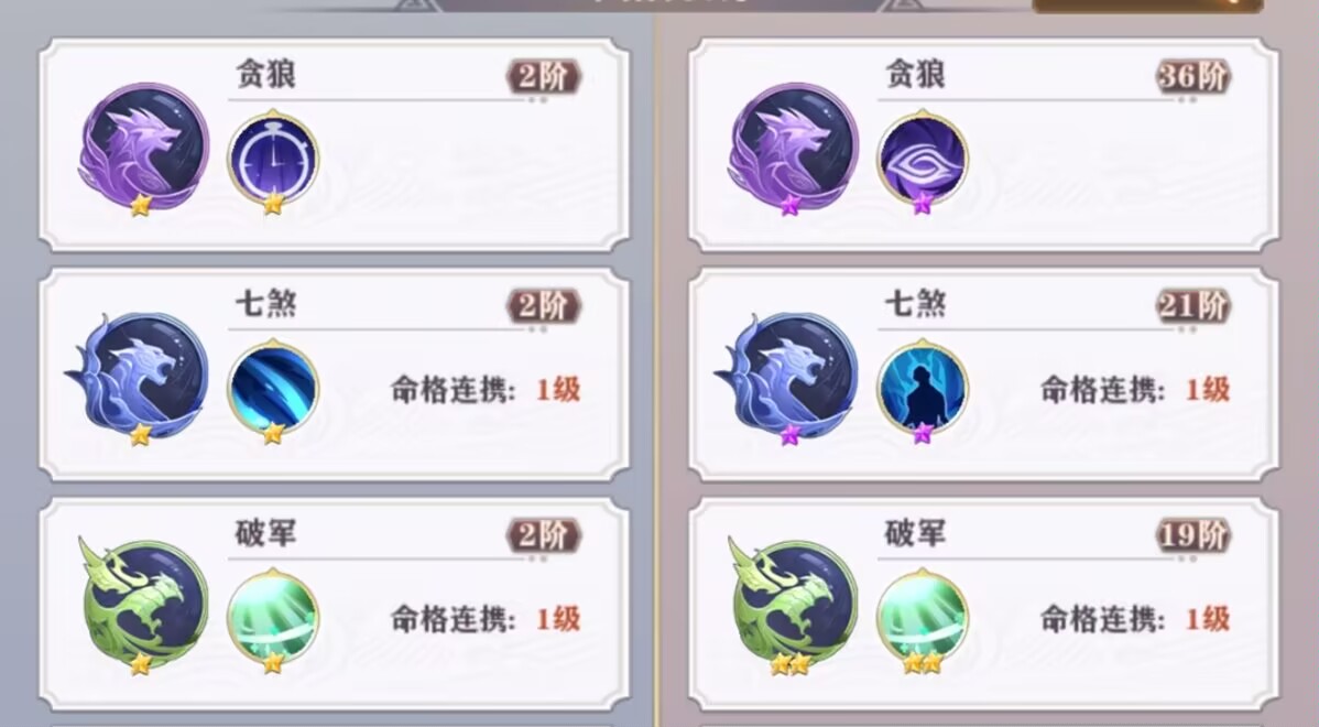 三:【命格】搭配推荐:不氪命格的玩家就直接搭配:贪狼+七煞+破军。
