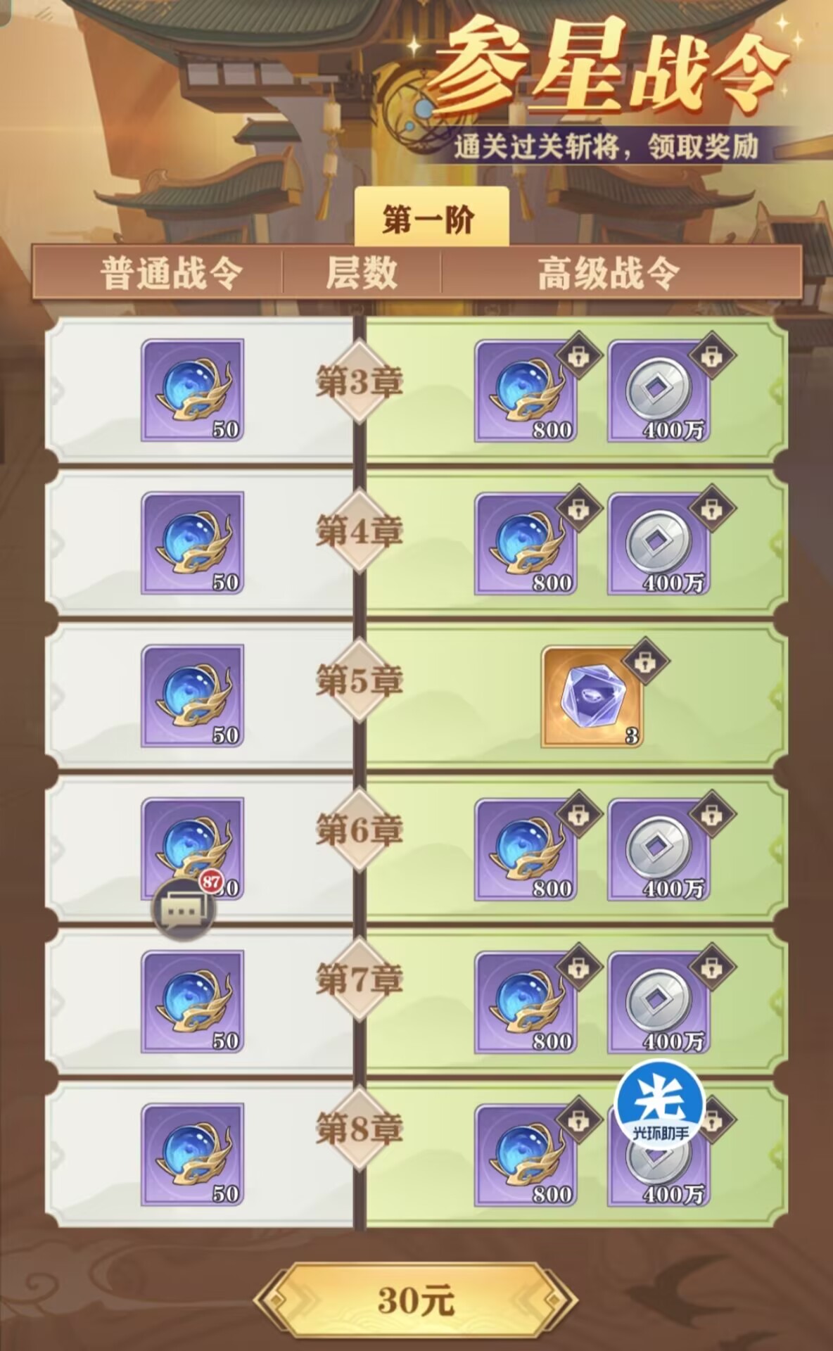 至于参星台战令。