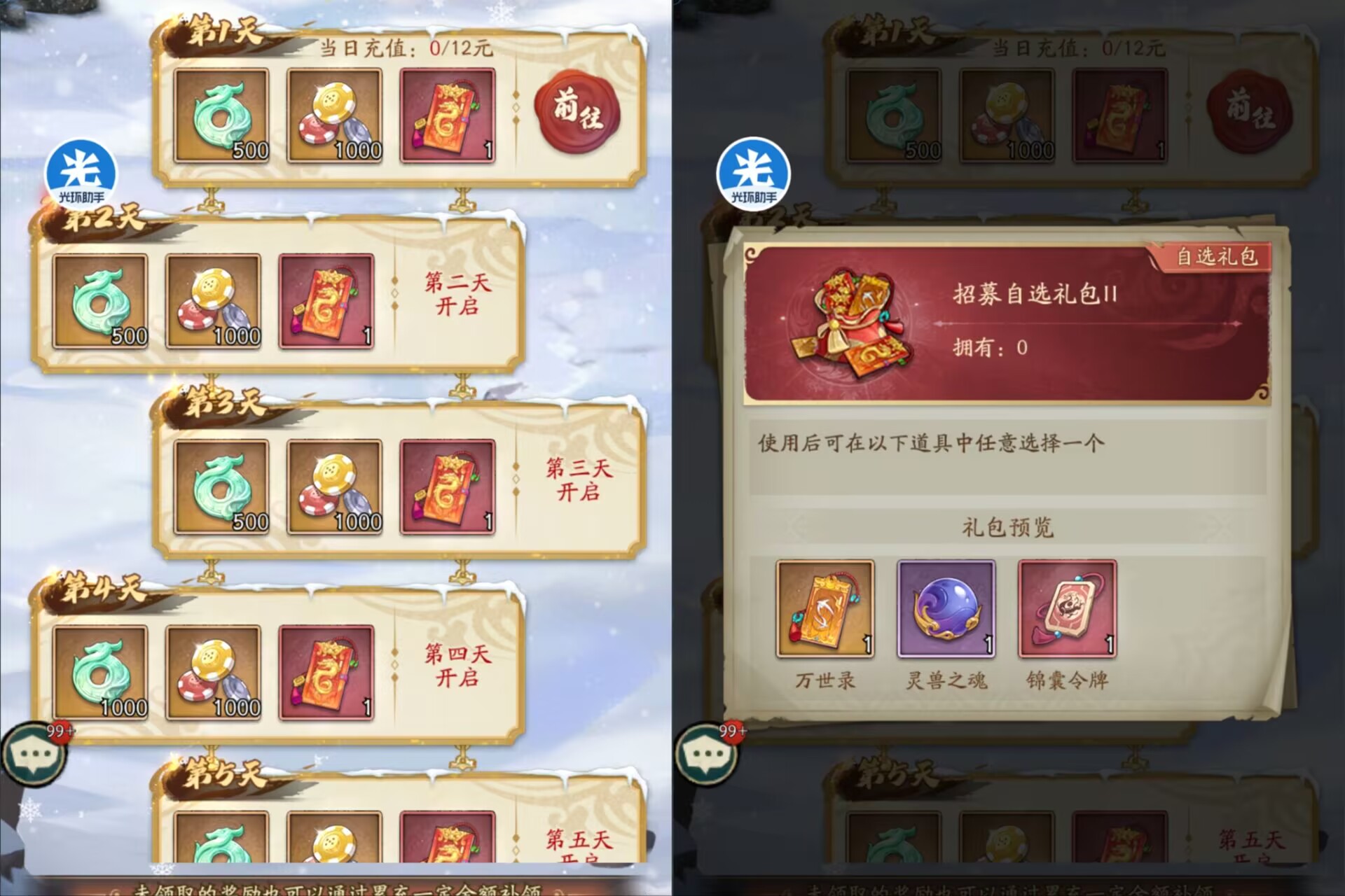 ①:白嫖奖励一共可以获得8个雪球+一些玉璧+一些招募卷。