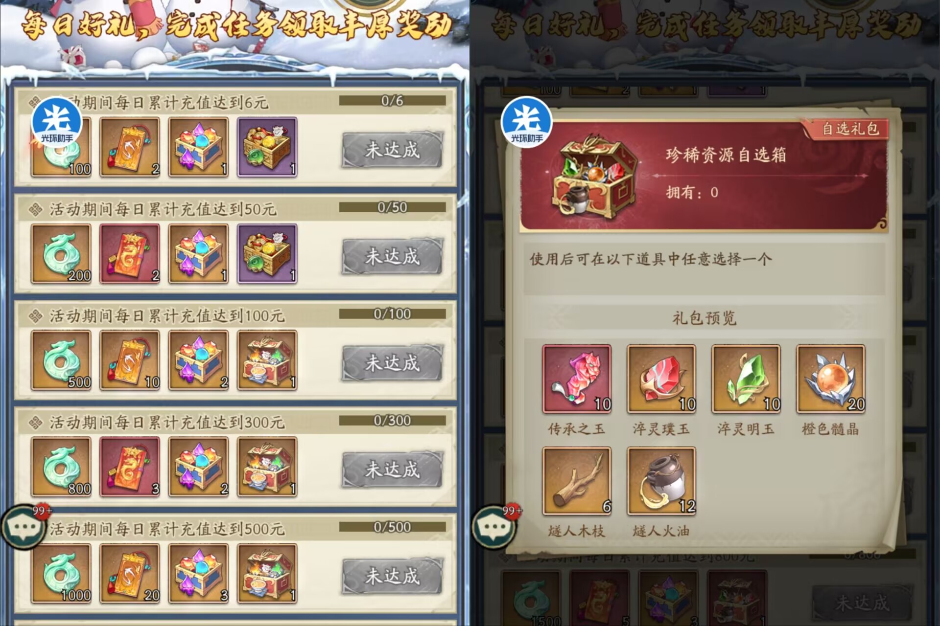 4连充回馈。5暖冬签到。6每日累充。