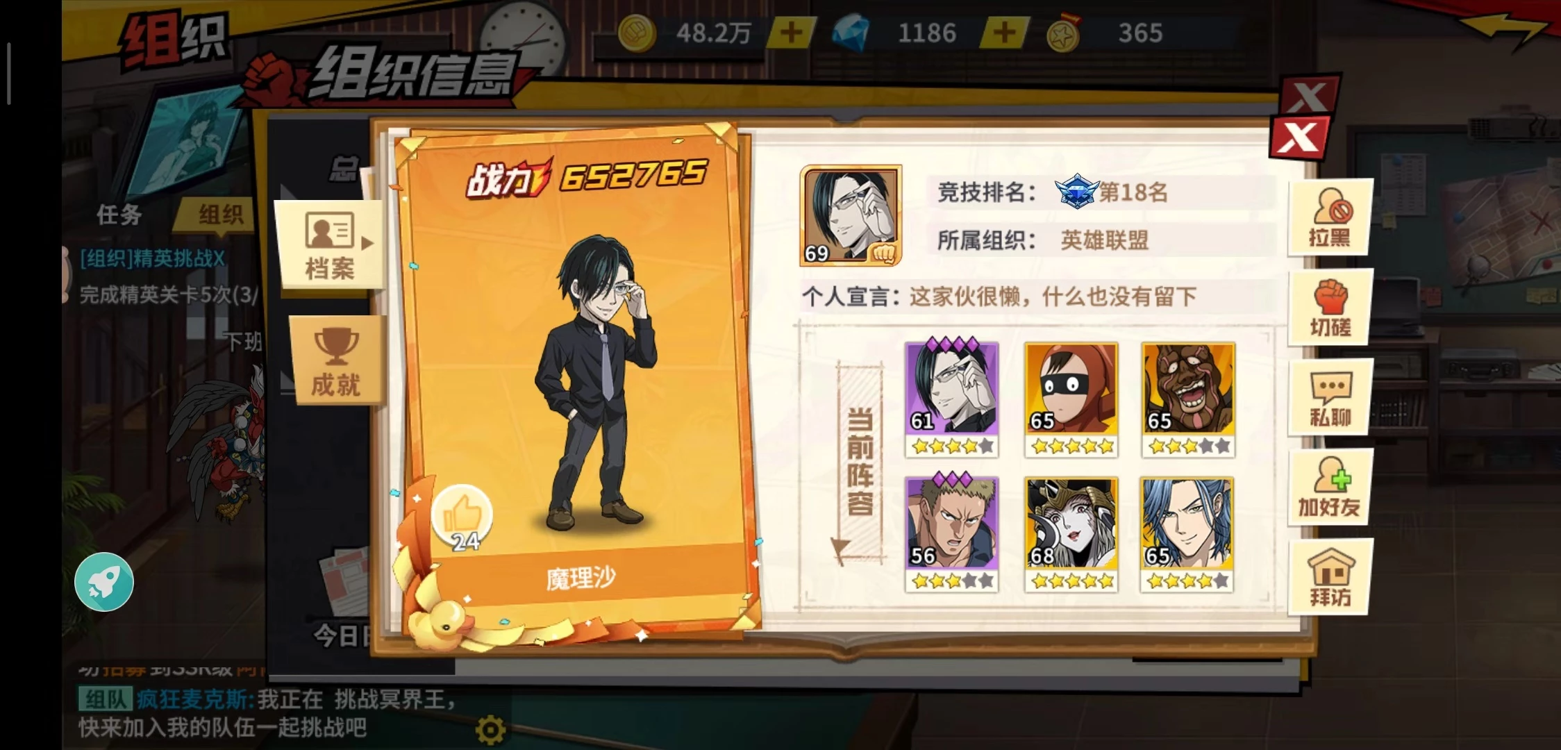 SR推荐组合:蚊女、微笑超人、吹雪、蛇拳、基博士+1SSR(背心,阿修罗等)